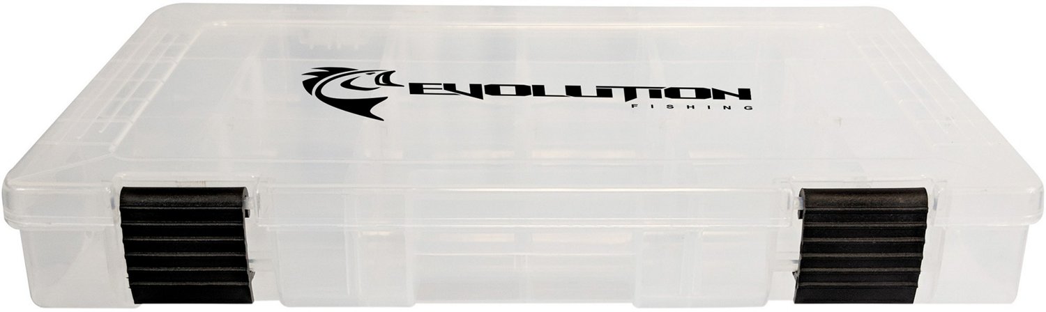 Stay organized while fishing with the Evolution Fishing 3600 Fishing Tackle Tray. This durable plastic tray has removable compartment dividers allowing for up to 18 compartments, making it easy for you to organize your baits, hooks and other essentials. The clear lid makes it easy for you to see, and the two latch closures stay closed. This tackle tray is compatible with Evolution 3600 tackle bags and backpacks.