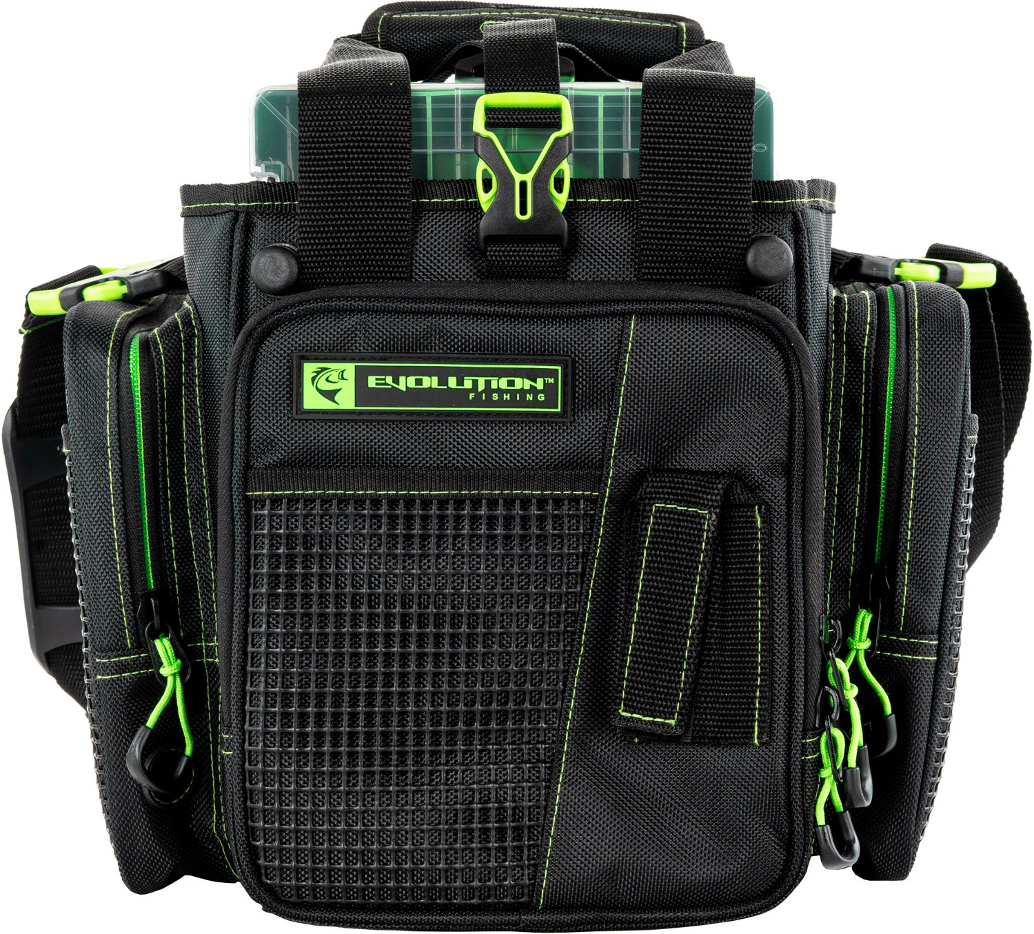 Store and organize your fishing gear in an easily-accessible place with the Evolution Fishing Vertical Drift Series 3600 Tackle Bag. This rugged bag features a topless design with largemouth opening for easy access to the five organizational trays. An integrated plier holster and built-in line spool feed offer added convenience, and the padded top handle and removable shoulder strap offer two ways to comfortably carry this bag.