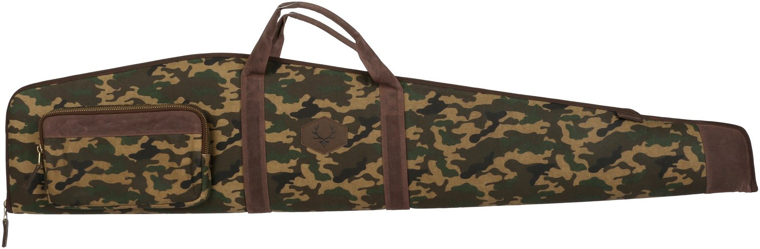 Protect your rifle without sacrificing your style with the Evolution Hunting Rawhide Series Classic Camo Rifle Case. This case has a classic camo pattern that reflects your love for hunting, and an antique brass zipper and leatherette logo patch add timeless style. The webbing straps make this case convenient to carry, while the faux wool lining, waxed cotton canvas and thick foam protect your rifle from damage.