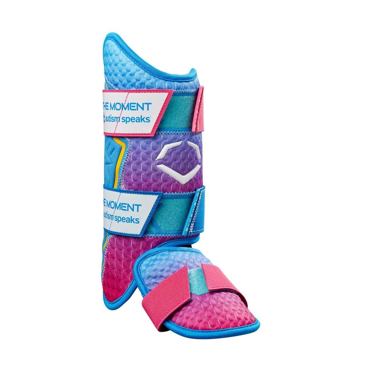 Share a message of inclusion at the plate with the Evoshield X-SRZ Love the Moment Batter’s Leg Guard, the custom-fitting baseball & softball leg guard with 3D Cloud Mesh displaying a Sky Blue to Pink gradient, matching the Autism Speaks signature logo. Form-fitting Gel-to-Shell Technology transforms from a flexible material out of the package to a body-mapping shield in just 30 minutes to protect the lead leg and top of the foot against foul balls and pitches in the dirt. Straps with rubberized pull tabs and “Love the Moment” branding secure the guard around a player’s leg. Evoshield is proud to support Autism Speaks and will donate 10 percent of the purchase price of all Love the Moment products to the organization’s efforts.