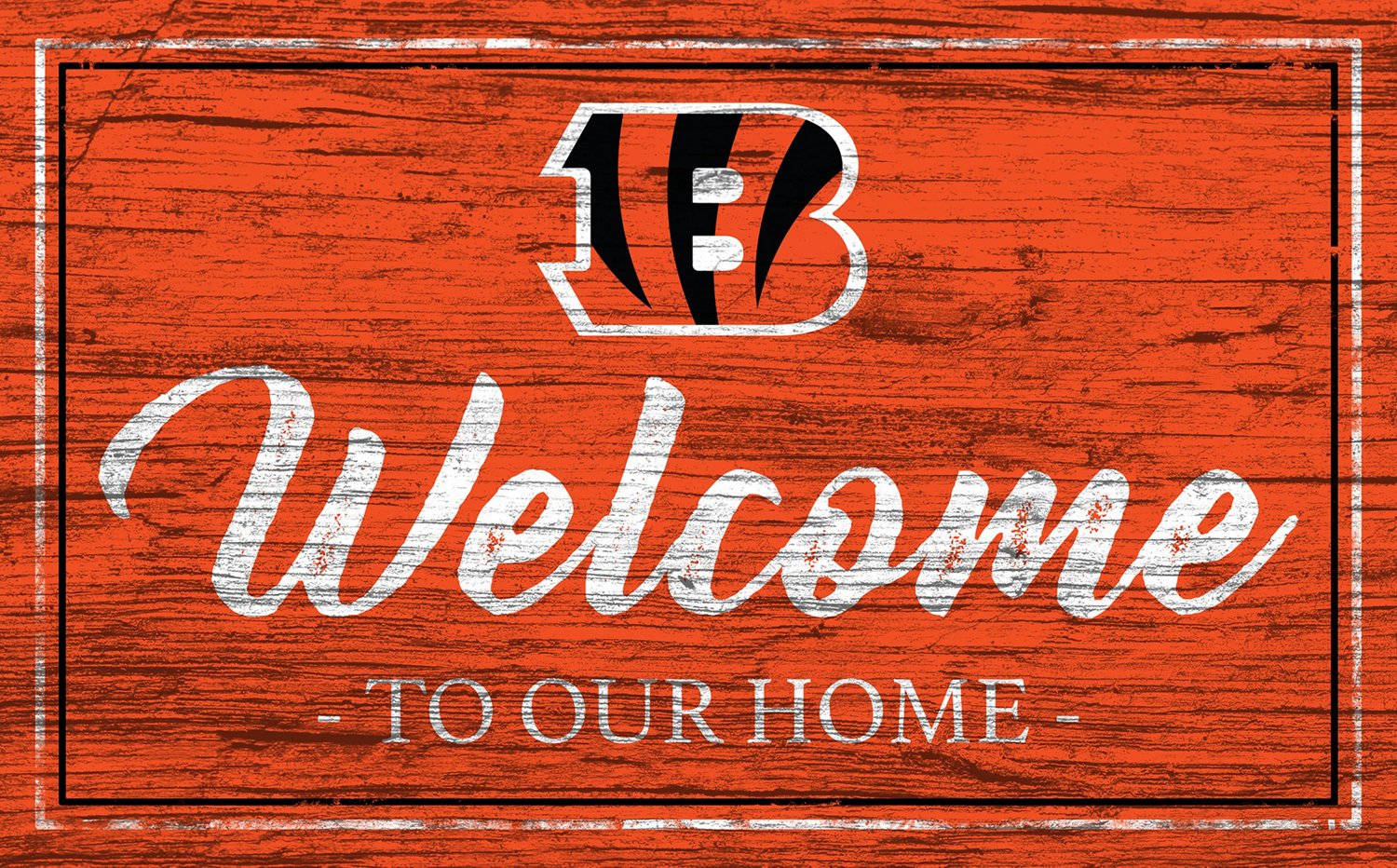 Create the fan cave of your dreams with help from the Fan Creations Cincinnati Bengals Team Color 11 in x 19 in Welcome Sign. Printed on a flat MDF base, this fan accessory offers a distressed look with the words "Welcome To Our Home" and a team logo to prove your family supports the Bengals.