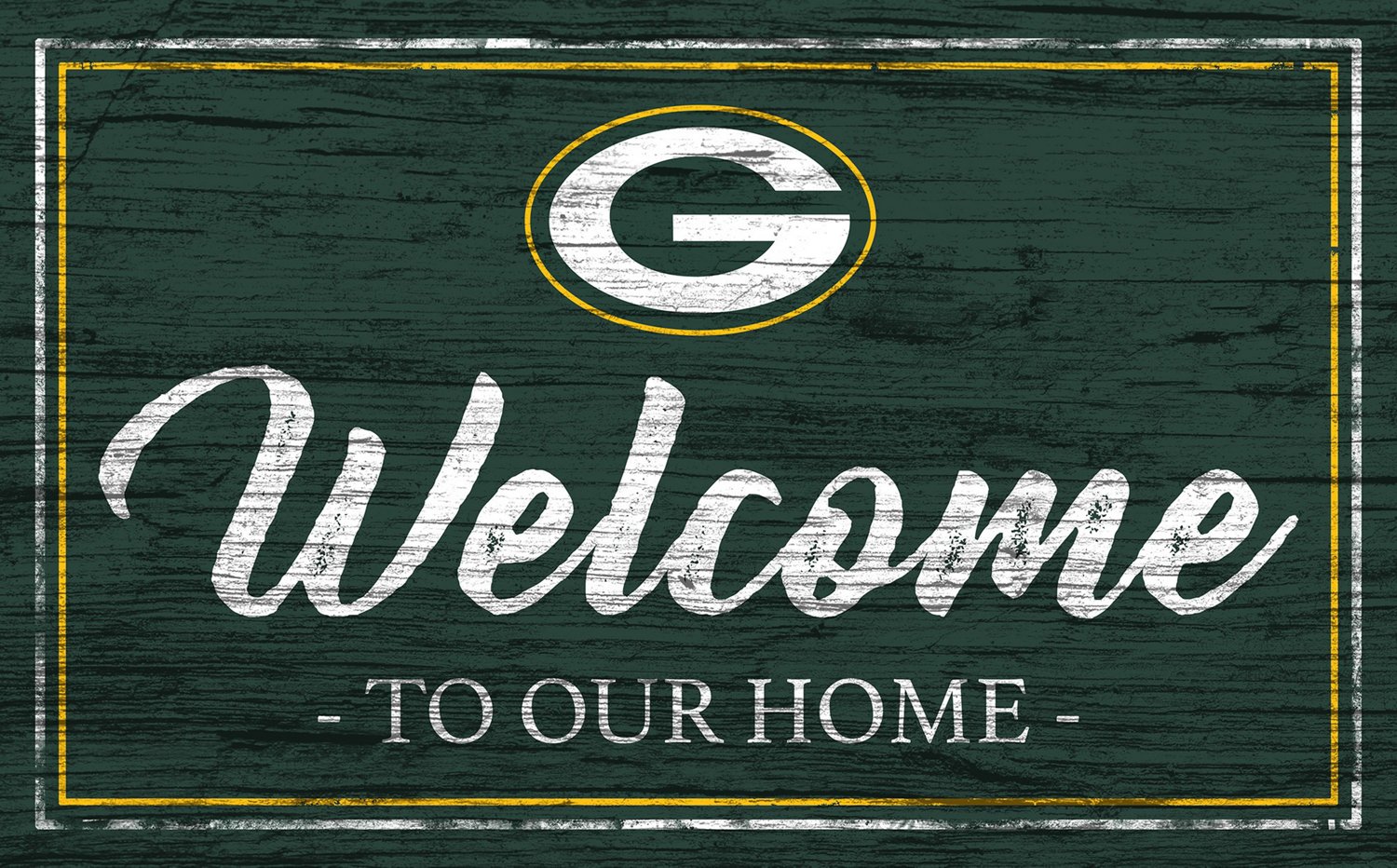 Create the fan cave of your dreams with help from the Fan Creations Green Bay Packers Team Color 11 in x 19 in Welcome Sign. Printed on a flat MDF base, this fan accessory offers a distressed look with the words "Welcome To Our Home" and a team logo to prove your family supports the Packers.