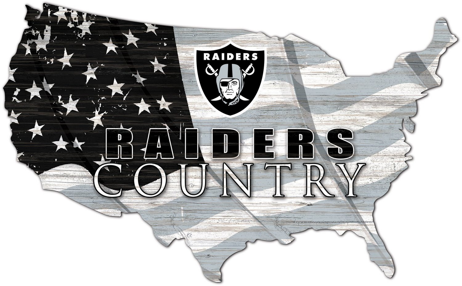 Proudly display your team loyalty with the Fan Creations Las Vegas Raiders USA Shape Cutout Wall Decor. This hanging sign is the perfect addition to your TV room or sports den with a patriotic USA cutout and a team logo to show everyone who you're rooting for. MDF wood lends durability and a solid feel.