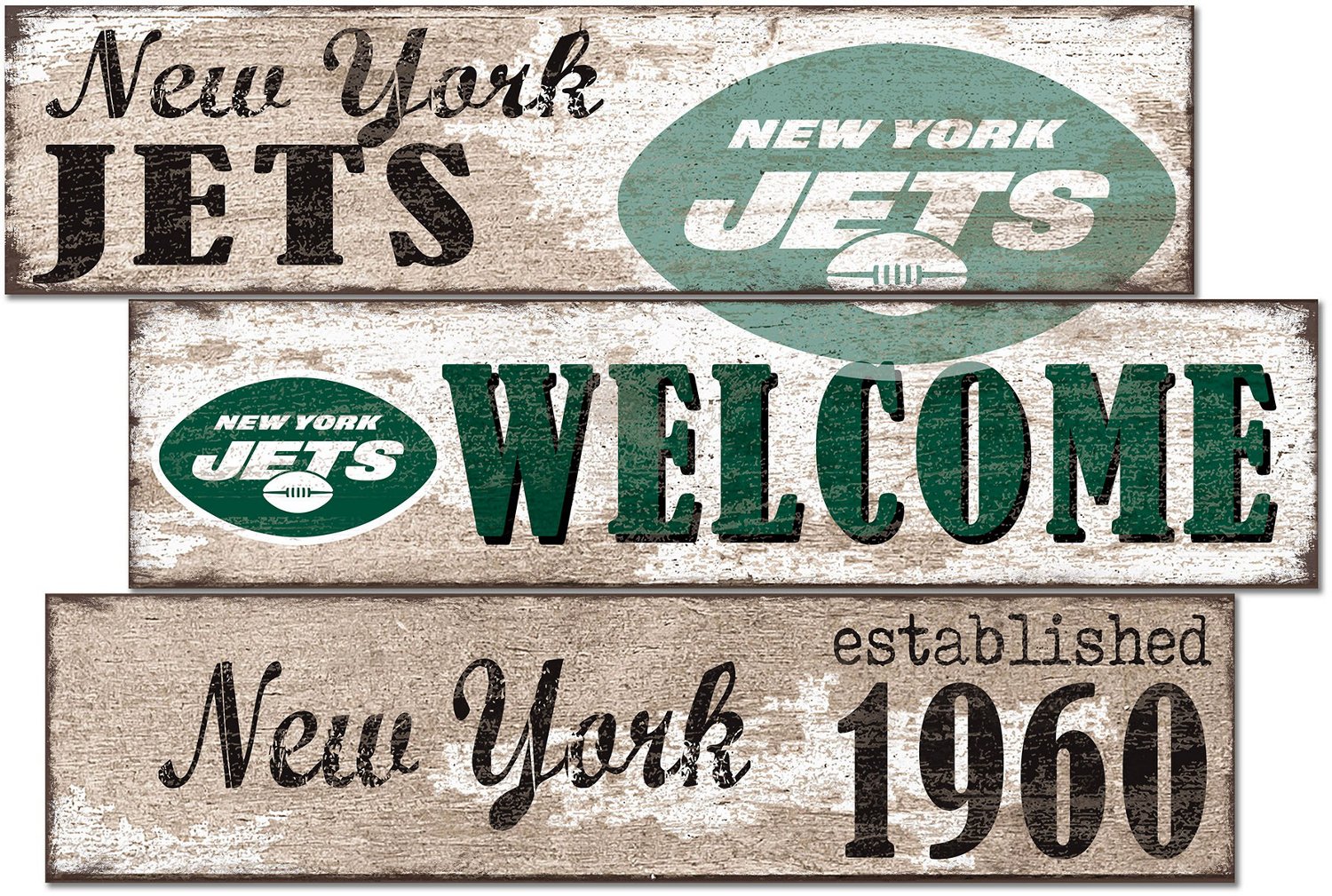 Invite guests into your home with the Fan Creations New York Jets Welcome 3 Plank Decor. This sign is the perfect addition to your front door, foyer or anywhere else in your home. The 3-plank design creates a rustic aesthetic, while the logo graphic welcomes guests and shows everyone who you're rooting for.