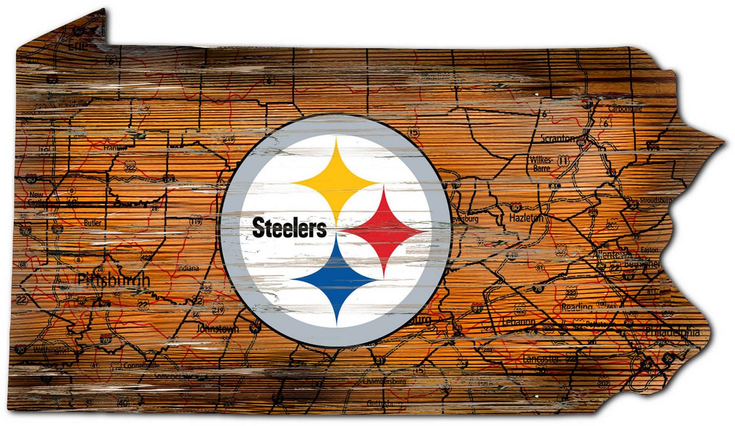 Decorate your home in Steelers style with the Fan Creations Pittsburgh Steelers Logo Distressed State Sign. The custom-printed MDF base has a realistic wooden appearance for a classic look with a 24-inch size that fits anywhere within your home. The Steelers design displays your love of the team.