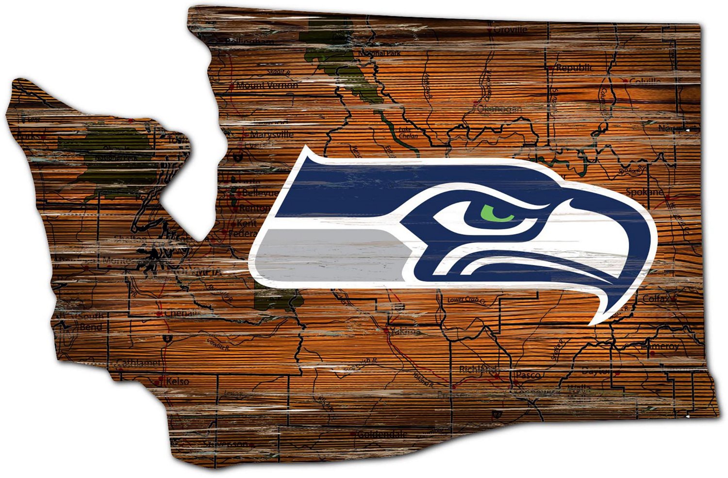 Decorate your home in Seahawks style with the Fan Creations Seattle Seahawks Logo Distressed State Sign. The custom-printed MDF base has a realistic wooden appearance for a classic look with a 24-inch size that fits anywhere within your home. The Seahawks design displays your love of the team.