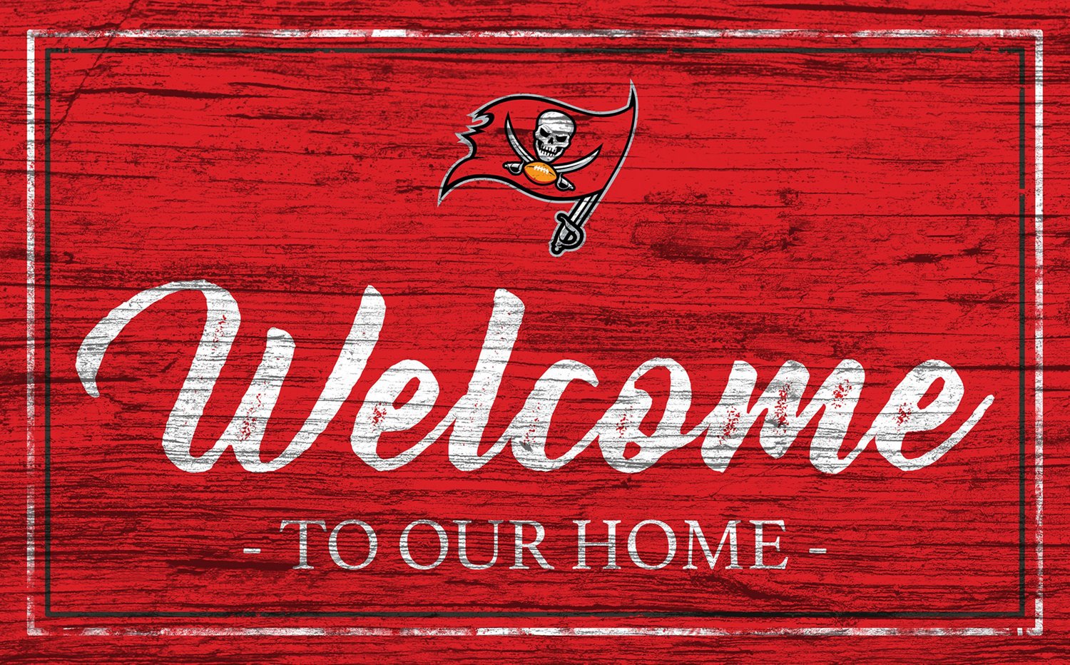 Create the fan cave of your dreams with help from the Fan Creations Tampa Bay Buccaneers Team Color 11 in x 19 in Welcome Sign. Printed on a flat MDF base, this fan accessory offers a distressed look with the words "Welcome To Our Home" and a team logo to prove your family supports the Bucs.