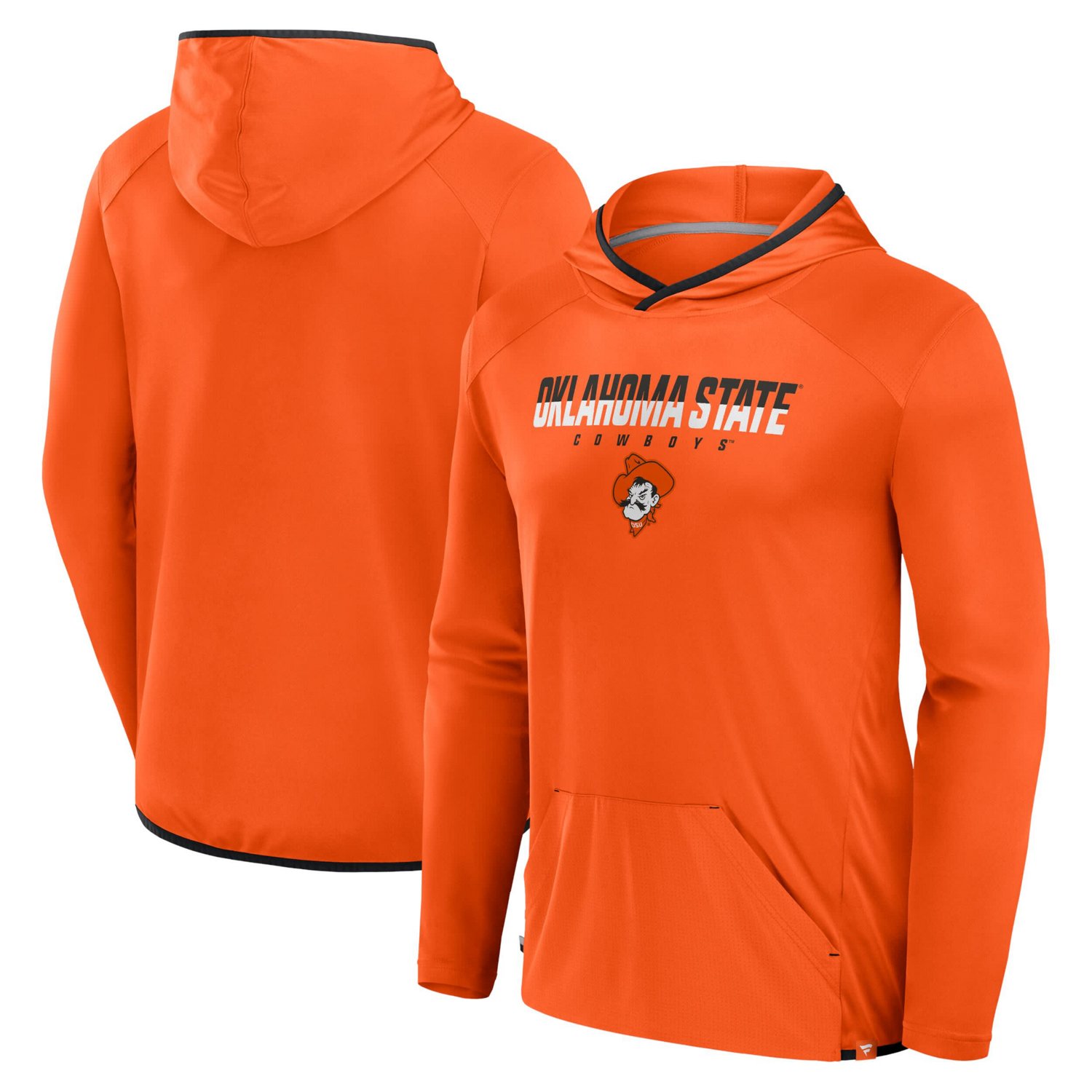 Gear up for game day with this Oklahoma State Cowboys Transitional Pullover Hoodie T-Shirt from Fanatics This lightweight hoodie T-shirt features contrast-color trim on the hood and hem for a sporty look that's perfect for layering The Oklahoma State Cowboys name and logo are proudly displayed on the front making it clear where your allegiance lies