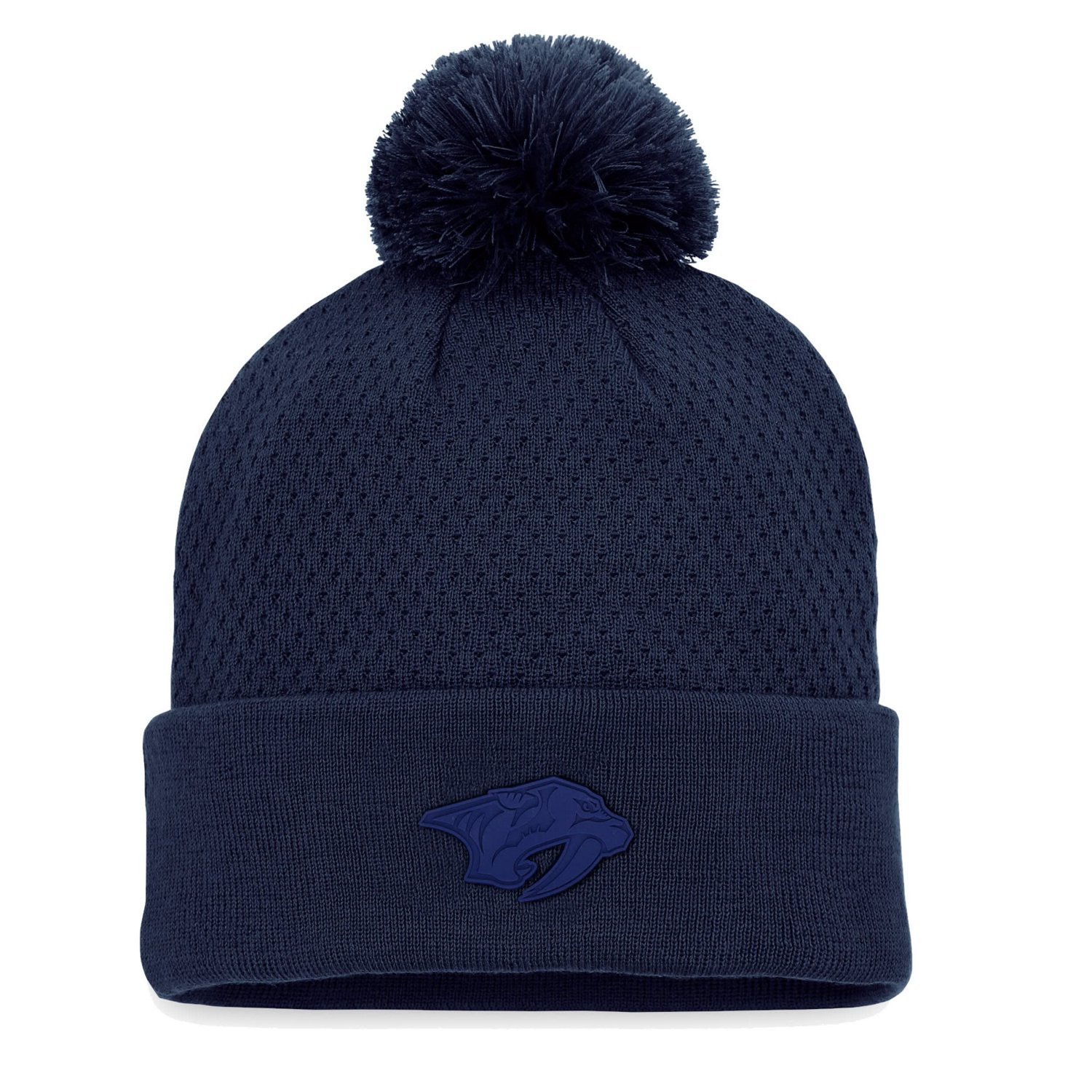 Match your favorite Nashville Predators players when they hit the road with this Authentic Pro hat This Fanatics Branded gear features embroidered team graphics and a classic pom on top Stay warm in team style with this cuffed Nashville Predators cap