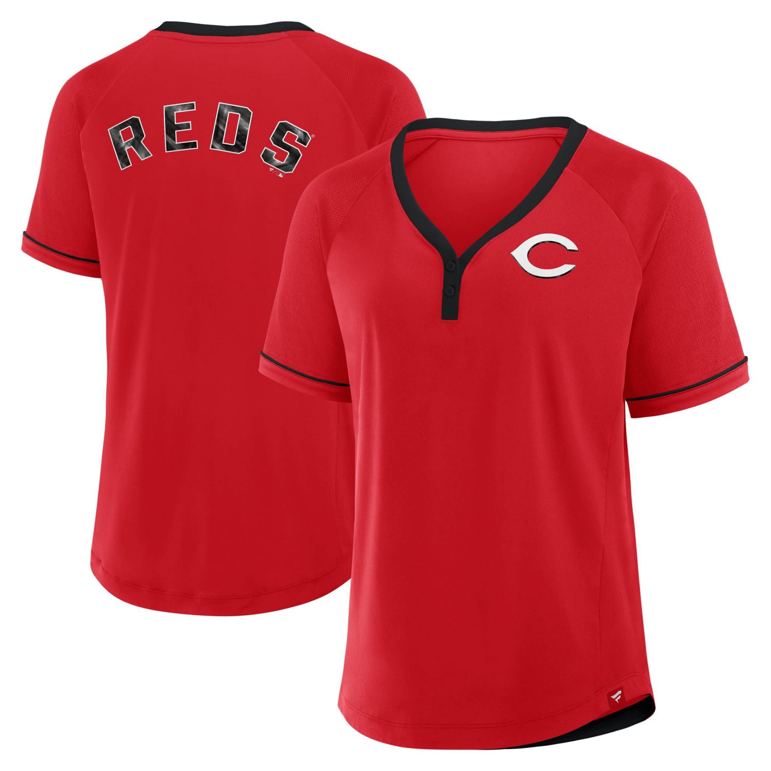 Add a touch of style to your Cincinnati Reds game day look with this League Diva Star Raglan V-Neck T-Shirt from Fanatics This stylish tee boasts a flattering v-neck and rounded hem for a look that's both sporty and chic The Cincinnati Reds wordmark is heat-sealed across the back while the team logo adorns the left chest
