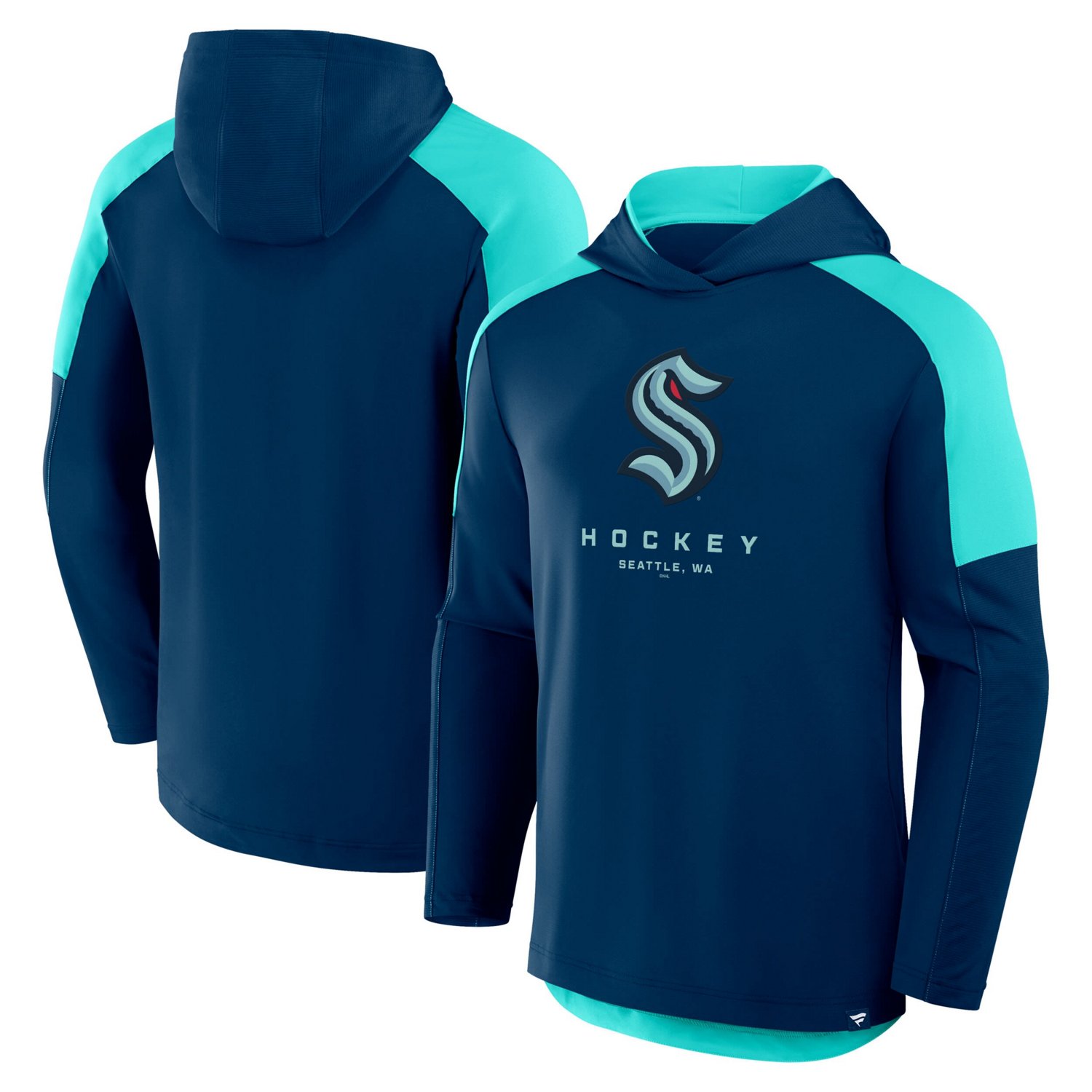 Sport Seattle Kraken colors proudly with this Meta Game Transitional Pullover Hoodie by Fanatics Its two-tone design features stretch jersey fabric and micro polyester for a flexible lightweight feel The rounded droptail hem gives this Seattle Kraken hoodie a more comfortable fit