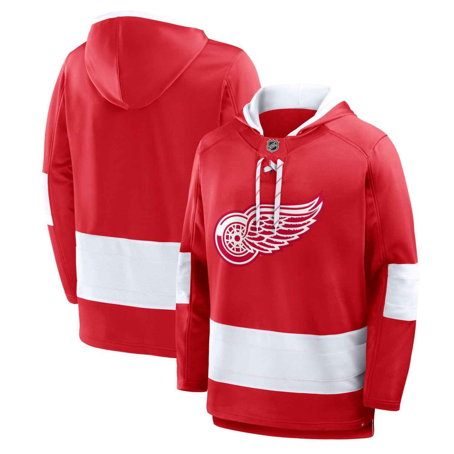 Boast your loyalty to the Detroit Red Wings in this Prime Time Fleece Hoodie by Fanatics Midweight fleece fabric provides cozy warmth while mesh panels and a mesh-lined hood create a breathable feel Mirroring the look of on-ice jerseys this Detroit Red Wings hoodie makes your fandom undeniable