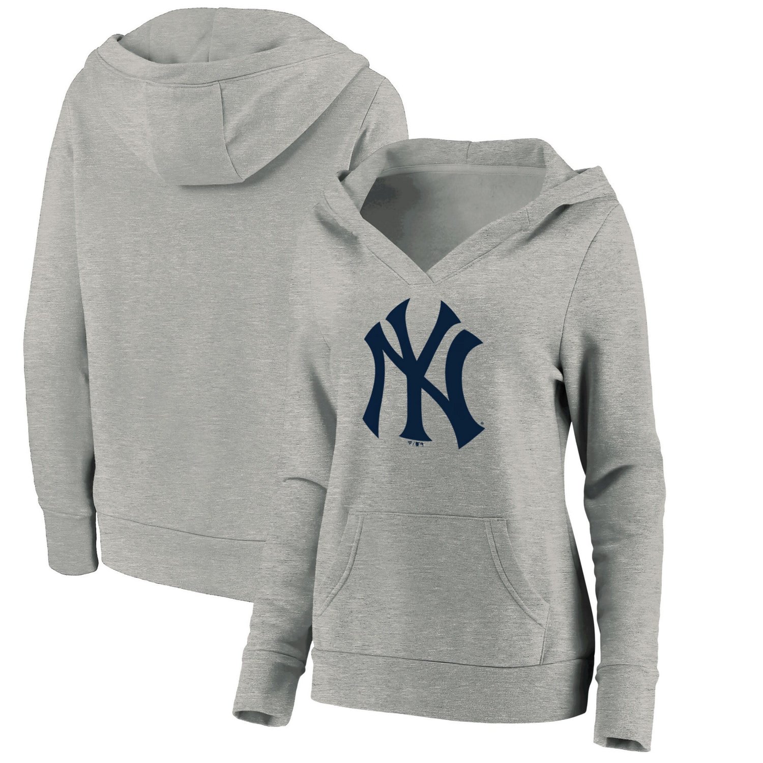 Fanatics Heathered Gray New York Yankees Official Logo Crossover V-Neck Pullover Hoodie