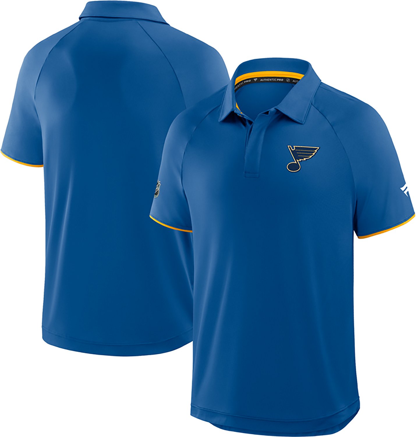 You can celebrate each win in style by wearing the Fanatics Men's Blues Authentic Pro Rink Polo Shirt. This stylish polo features short sleeves and a collar for a cool look and a team design that makes your love easy to see.