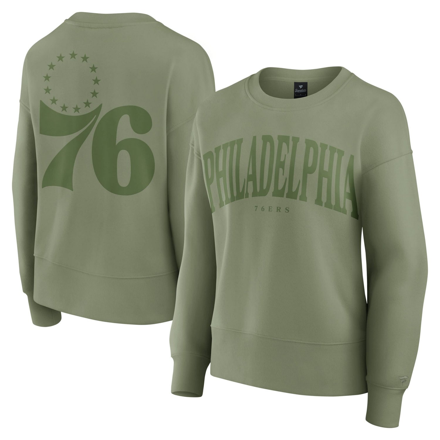 Show off your Philadelphia 76ers spirit in this Elements Flow Pullover Sweatshirt from Fanatics It features a classic crew neck and dropped shoulder seams for a relaxed comfortable fit Screen-printed graphics across the front and back boldly display your Philadelphia 76ers pride while fleece lining provides an extra layer of warmth for chilly game days or casual outings