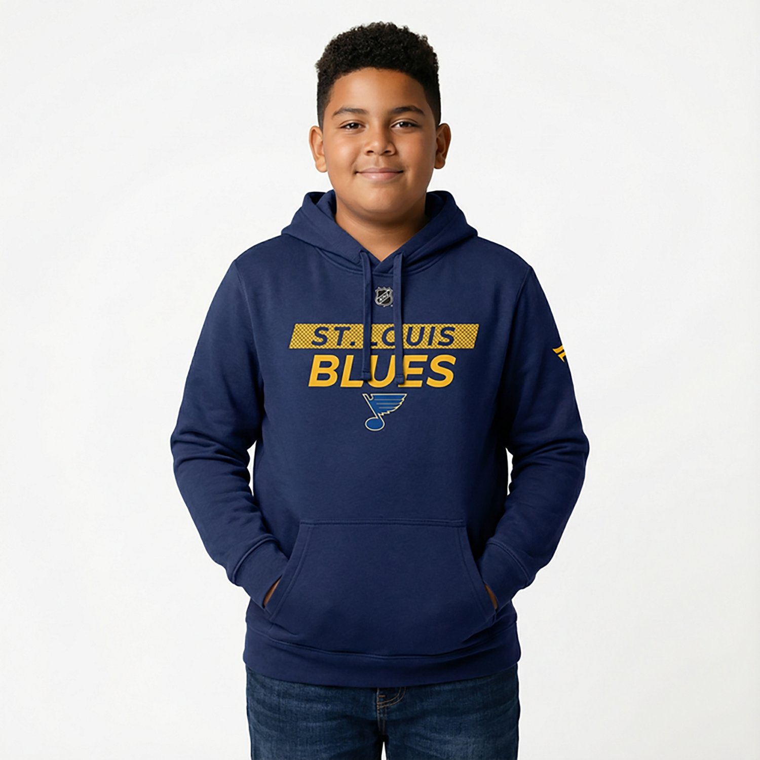 Arrive to the rink looking like a member of the St Louis Blues This Authentic Pro Core Primary Fleece Pullover Hoodie from Fanatics features authentic team graphics and designs that the St Louis Blues wear The fleece interior lining will keep you warm deep into hockey season