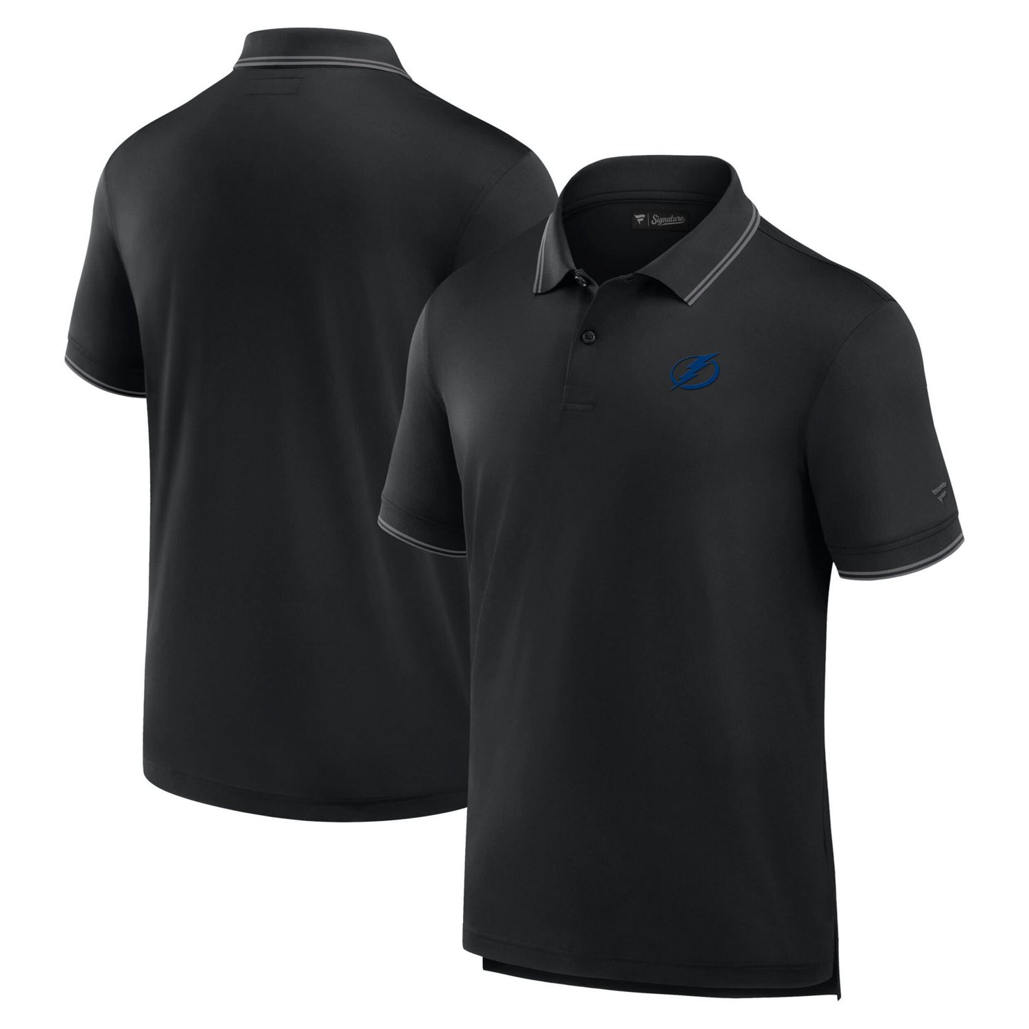 Represent the Tampa Bay Lightning with the sleek and professional look of the Fanatics Front Office Polo This classically-designed polo features a comfortable blend of polyester and spandex for a performance fit that moves with you Its two-button placket and droptail hem with side splits create a polished look that's perfect for representing the Tampa Bay Lightning from the office to the arena