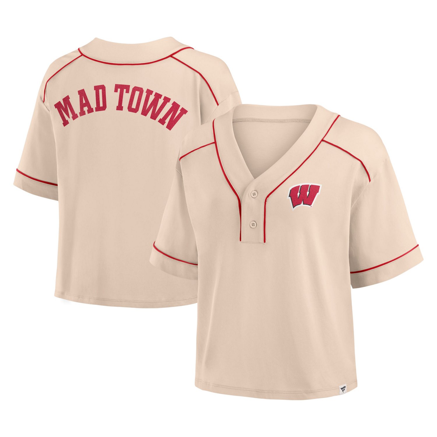 Fanatics Wisconsin Badgers Oversized Dominant Force Midi V-Neck T-Shirt