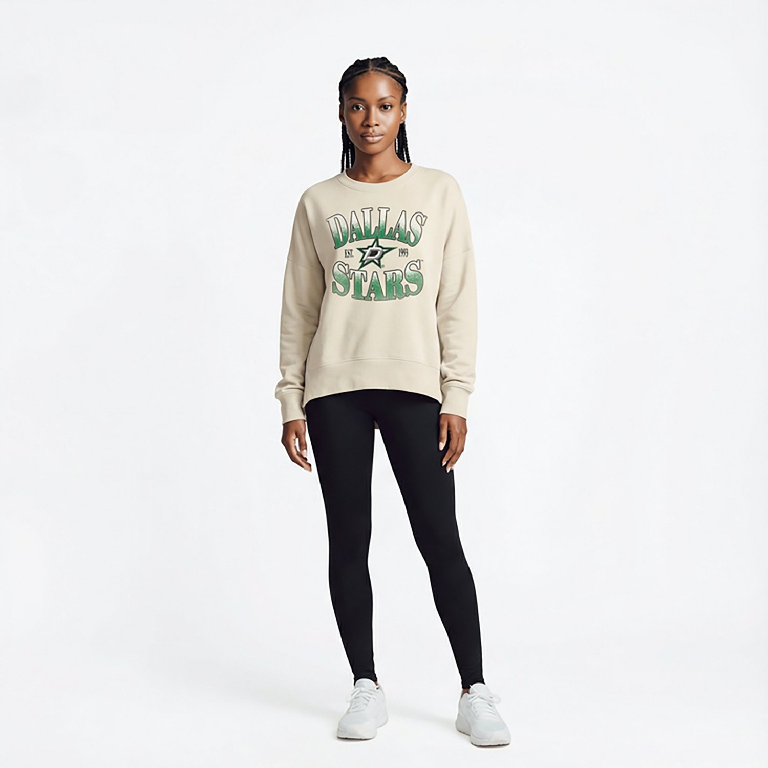 Root for your favorite team when you wear the Fanatics Women's Dallas Stars Slice French Terry Crew Sweatshirt. It is made of French terry. The long sleeves keep you warm, and its crew neckline creates a casual look. The screen printed Dallas Stars graphics show off your team spirit.