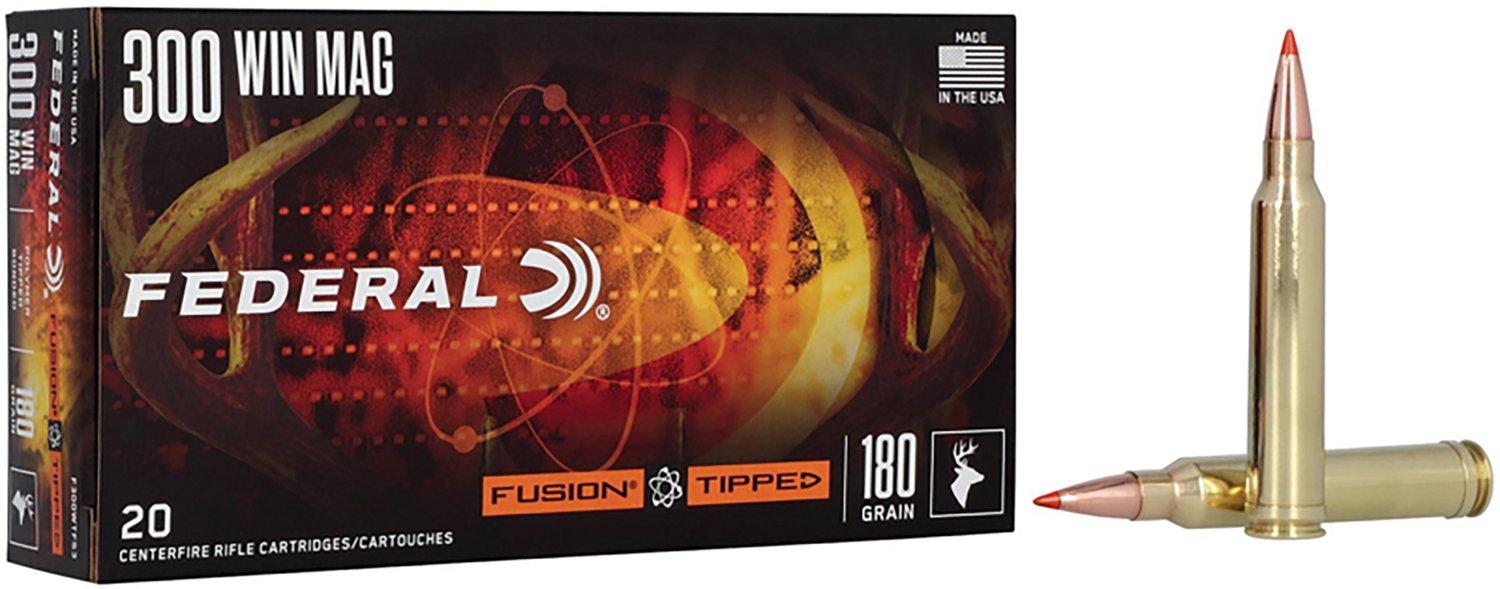 Federal Premium Fusion Tipped .300 Winchester Magnum 180-Grain Centerfire Rifle Ammunition - 20 Rounds
