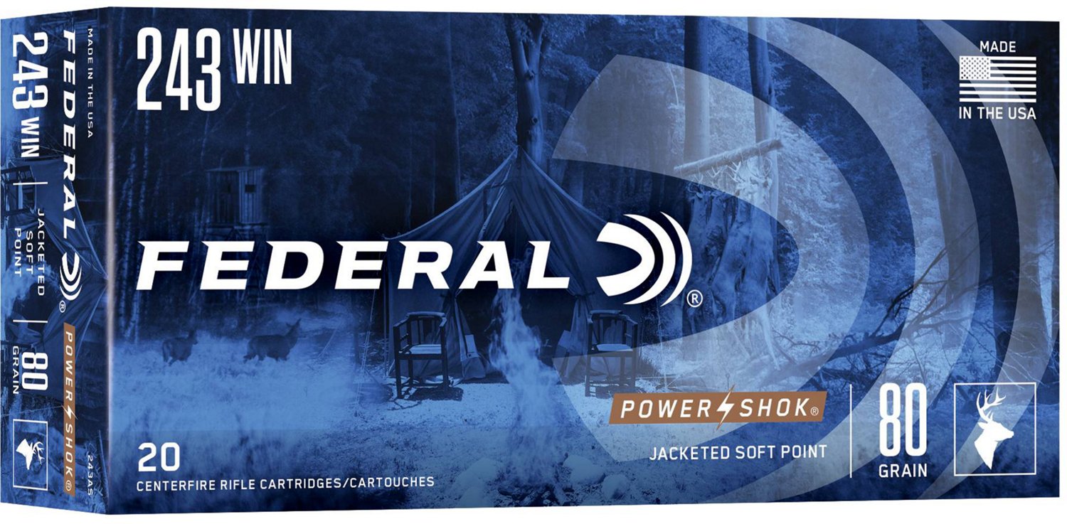 Federal Premium Power-Shok Soft-Point .243 Win. 80-Grain Centerfire Rifle Ammunition