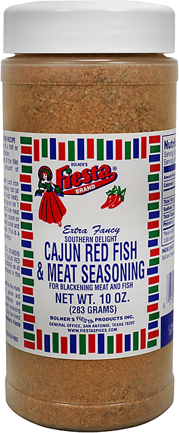 Enjoy an authentic Cajun-style meal with the Fiesta Cajun 10 oz Redfish & Meat Seasoning. Garlic, onion, salt and Cajun spices provide a delicious taste, making this seasoning ideal when paired with your favorite meat and seafood.