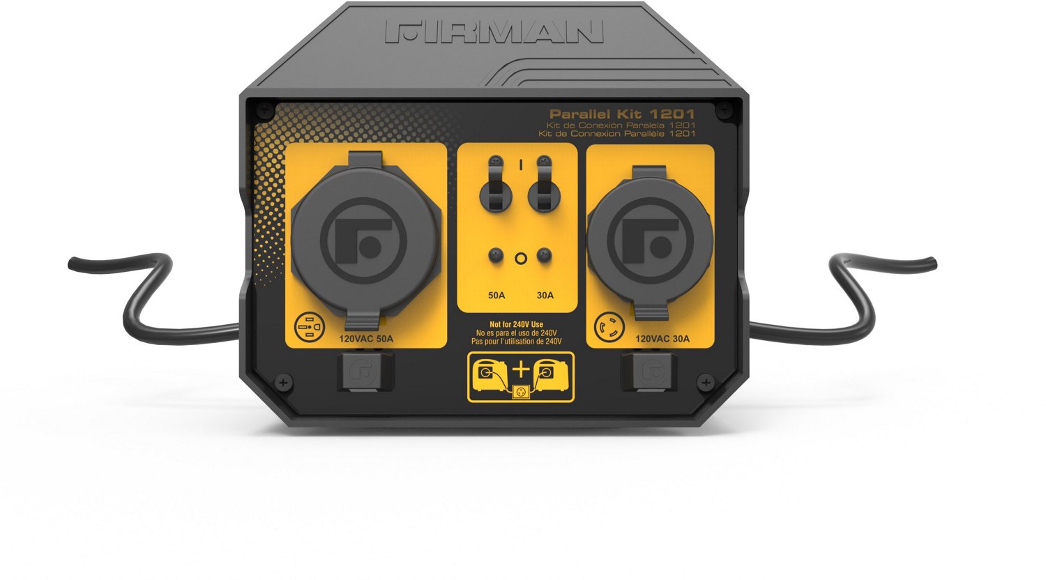 Power your adventures with help from the Firman 50A Portable Generator Parallel Kit. This device connects 2 Firman generators together to increase your power supply. The integrated outlet covers provide protection against dust and debris, while the small design encourages easy portability and the LED light panel offers visibility in low light conditions.
