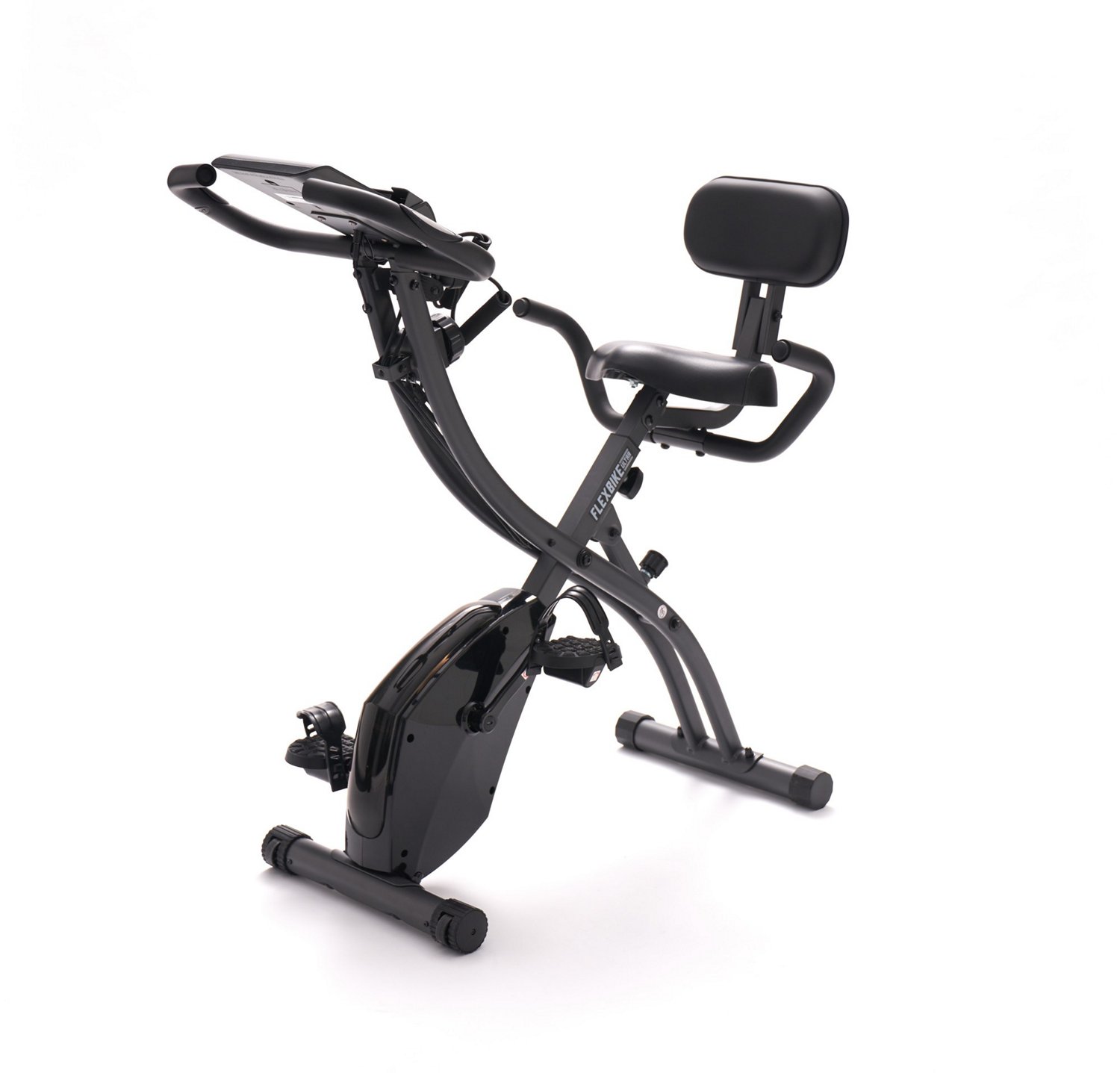 Work out from the comfort of home with a FitNation Flex Bike Ultra Stationary Bike. Multiple levels of resistance and built-in upper body bands let you exercise your whole body, while an LCD screen tracks your progress. The adjustable padded seat keeps you comfortable, and non-skid pedals with safety straps help you stay securely on the bike.