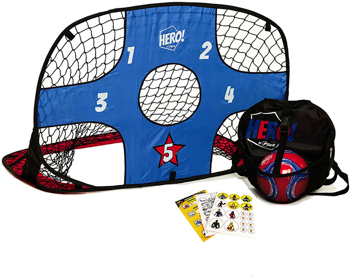 Work on your shooting and accuracy skills with the Flick Hero Striker's Goal Pack. The reversible design features a target goal and standard goal, while the pop-up design allows for easy setup and takedown.