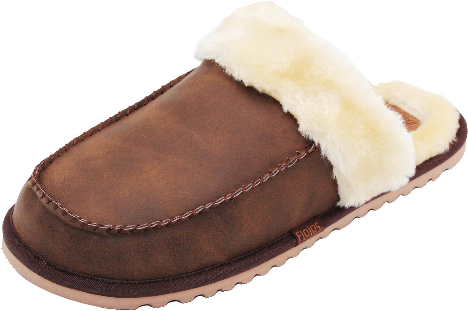 Take on the day in comfort and style when you slip on the Flojos Adults' Lynx Mule Slippers. The burnished faux leather uppers provide stylish and comfortable wear. The faux shearling trim, liners and socks offer softness and warmth. The padded footbeds supply a plush, cozy fit, while their slip-on construction encourages easy on and off.