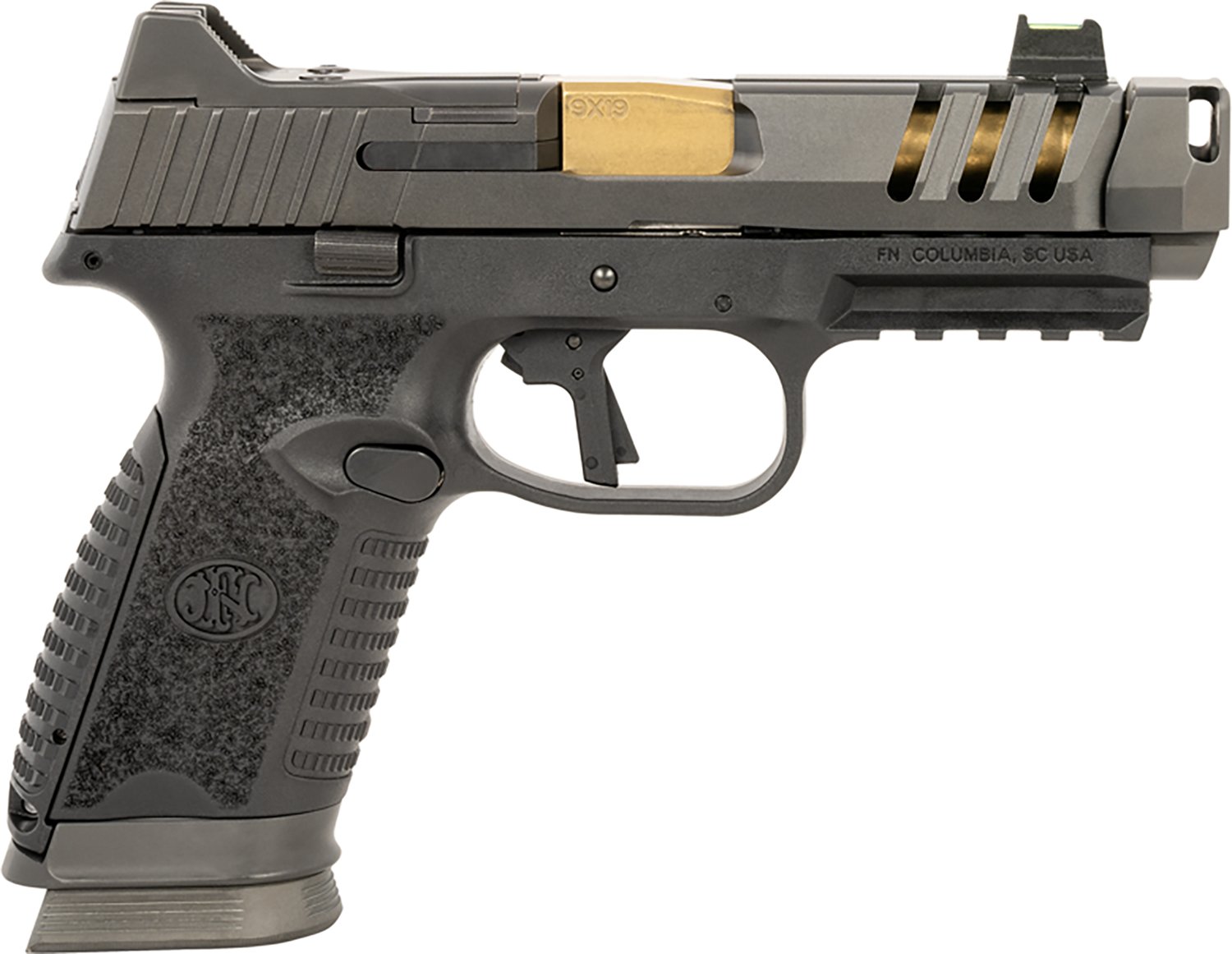Step into the field with the FN 509 CC Edge XL 9mm Semiautomatic Black Polymer Frame Pistol. The 4.2-inch barrel is threaded with an integrated compensator, and the polymer frame has a black finish.