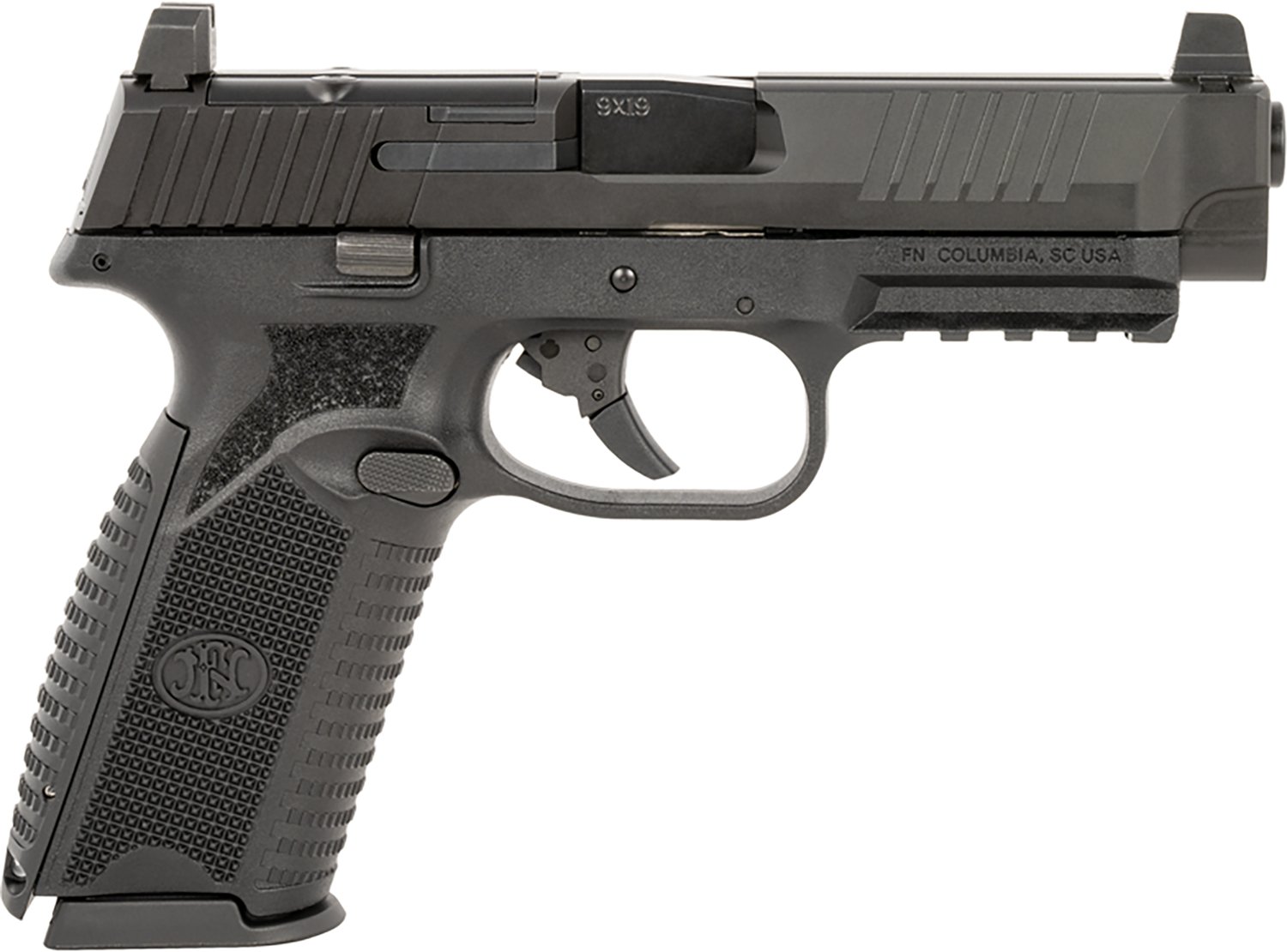 Step into the field with the FN 509 MRD 9mm Semiautomatic Black Polymer Frame Pistol. The 4.5-inch barrel is rifled at a 1:10-inch twist, and the polymer frame has a black PVD finish.