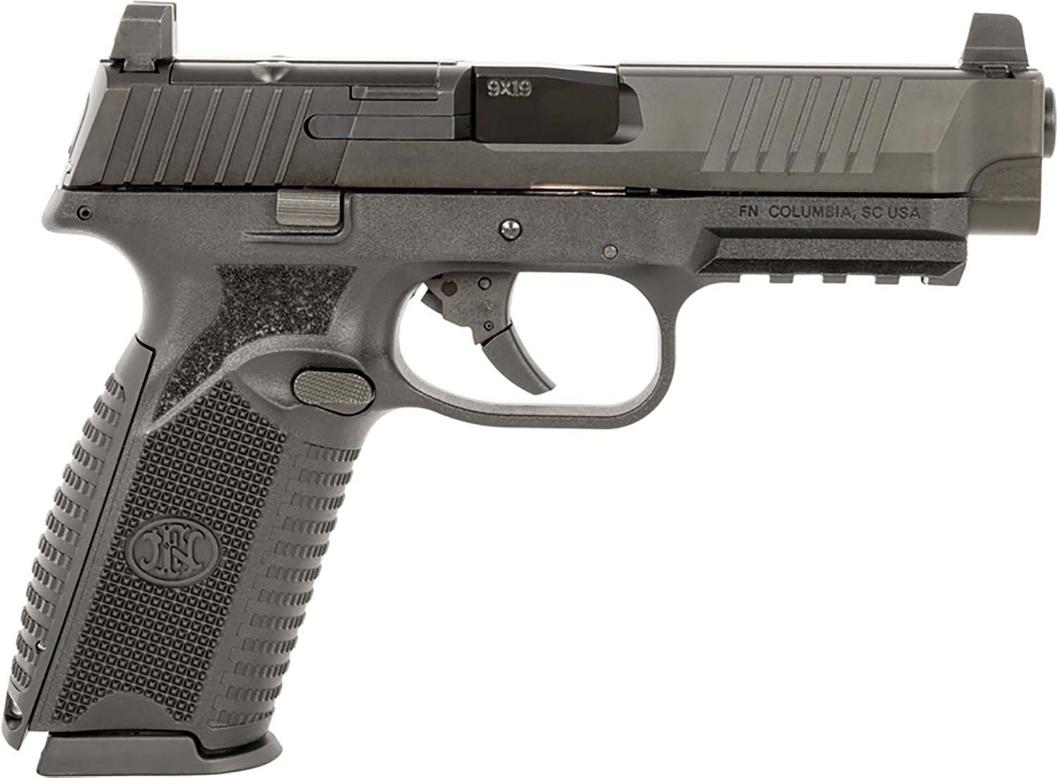 Step into the field with the FN 509 MRD 9mm Semiautomatic Black Polymer Frame Pistol. The 4.5-inch barrel is rifled at a 1:10-inch twist, and the polymer frame has a black PVD finish.
