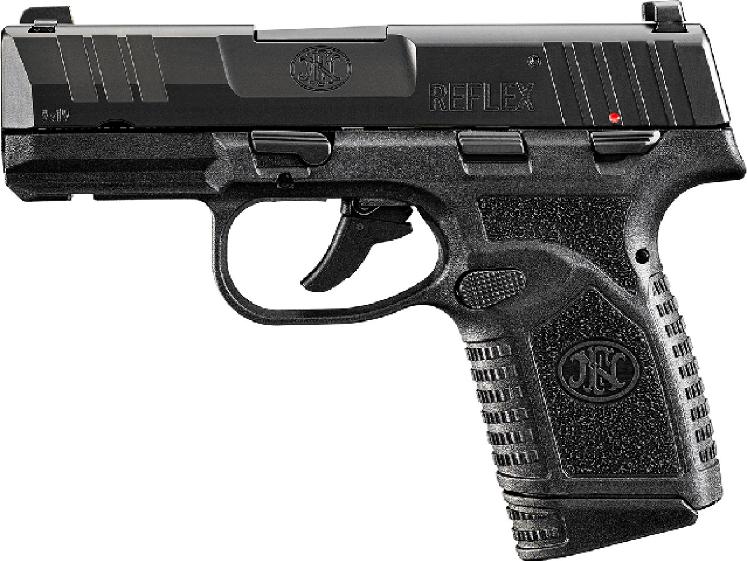 The FN Reflex 9mm Pistol is single action and has a 10+1-round capacity. It's built with a polymer frame, reversible magazine release and in-mold stippled grips. Orange front night and double dot rear sights and a slim line rail mount complete the design.