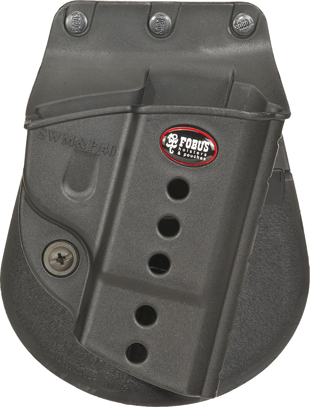 The Fobus Smith & Wesson Evolution Paddle Holster features a steel reinforced rivet attachment system on the paddle and holster body. The retention adjustment screw allows you to select your level of retention, and the holster features a protective sight channel. A rubberized paddle insert provides comfort and stability. Fits Smith & Wesson M&P 9mm, .40 and .45 handguns.