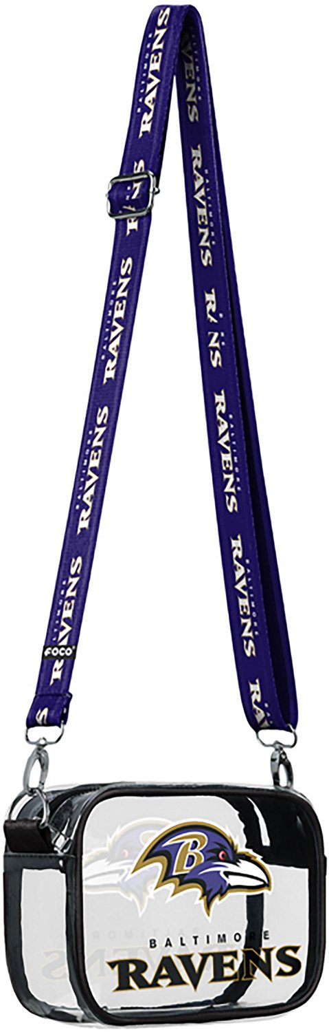 Bring all you need to watch the Ravens get a victory with the FOCO Baltimore Ravens Clear Camera Bag. This bag is clear and features a team design that helps prove your loyalty, and the strap makes it easy to throw over your shoulder.