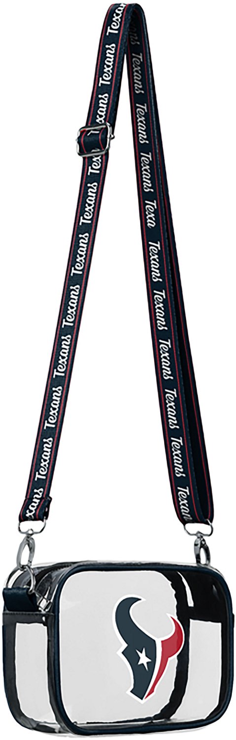 Bring all you need to watch the Texans get a victory with the FOCO Houston Texans Clear Team Stripe Cursive Camera Bag. This bag is clear and features a team design that helps prove your loyalty, and the strap makes it easy to throw over your shoulder.