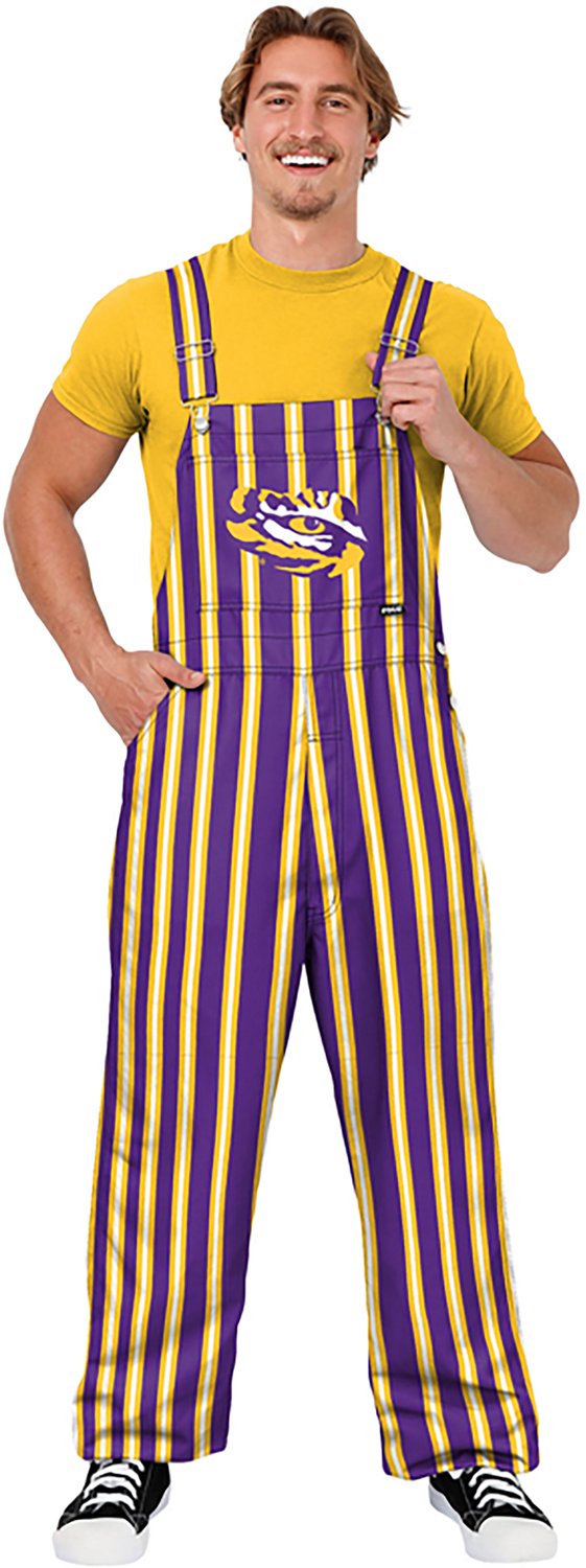 Make sure you’re ready to rep your school wherever you go by wearing the FOCO Men's LSU Sideline Spirit Stripe Overalls. These overalls are made of 100% canvas to provide comfort and long-lasting use, and the striped design and team logo help ensure that everyone sees your fan pride.