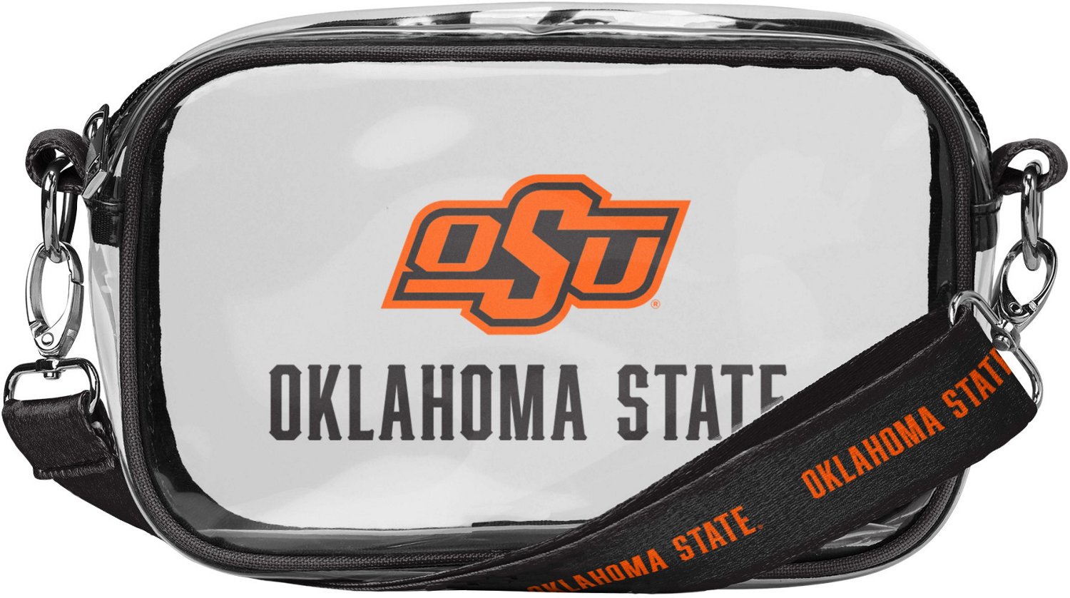 Complement your outfit with the perfect game day accessory when carrying the FOCO Oklahoma State University Clear Camera Bag. The lightweight yet tough PVC body is transparent, letting you easily see and locate bag contents, while an ergonomic shoulder strap keeps carrying comfortable. Printed team graphics show everyone who you're rooting for.