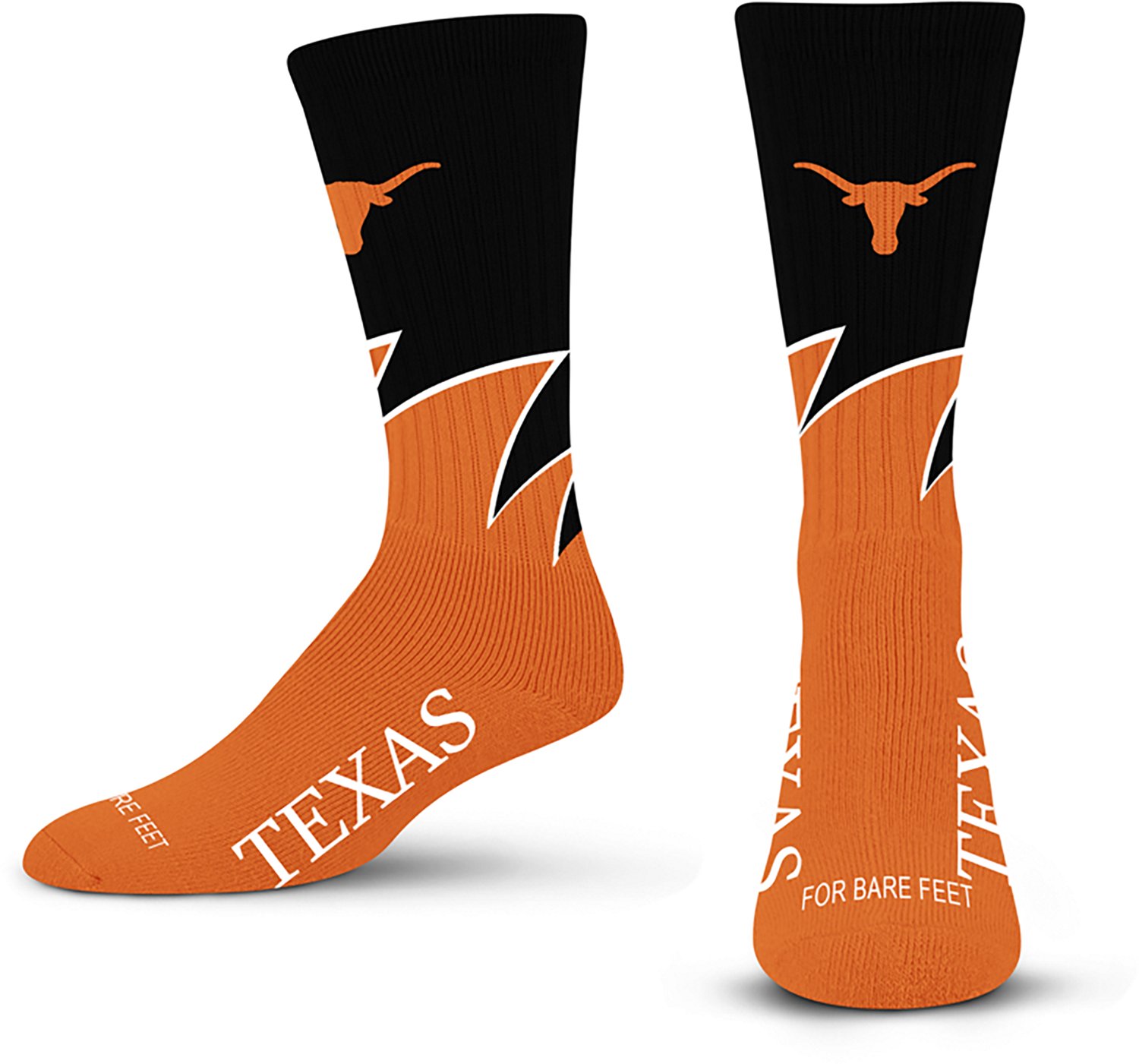 Show off your team spirit with the For Bare Feet University of Texas Black Wave Socks. The acrylic material provides a comfortable feel, while the team graphics let everyone know you're a Longhorns fan.