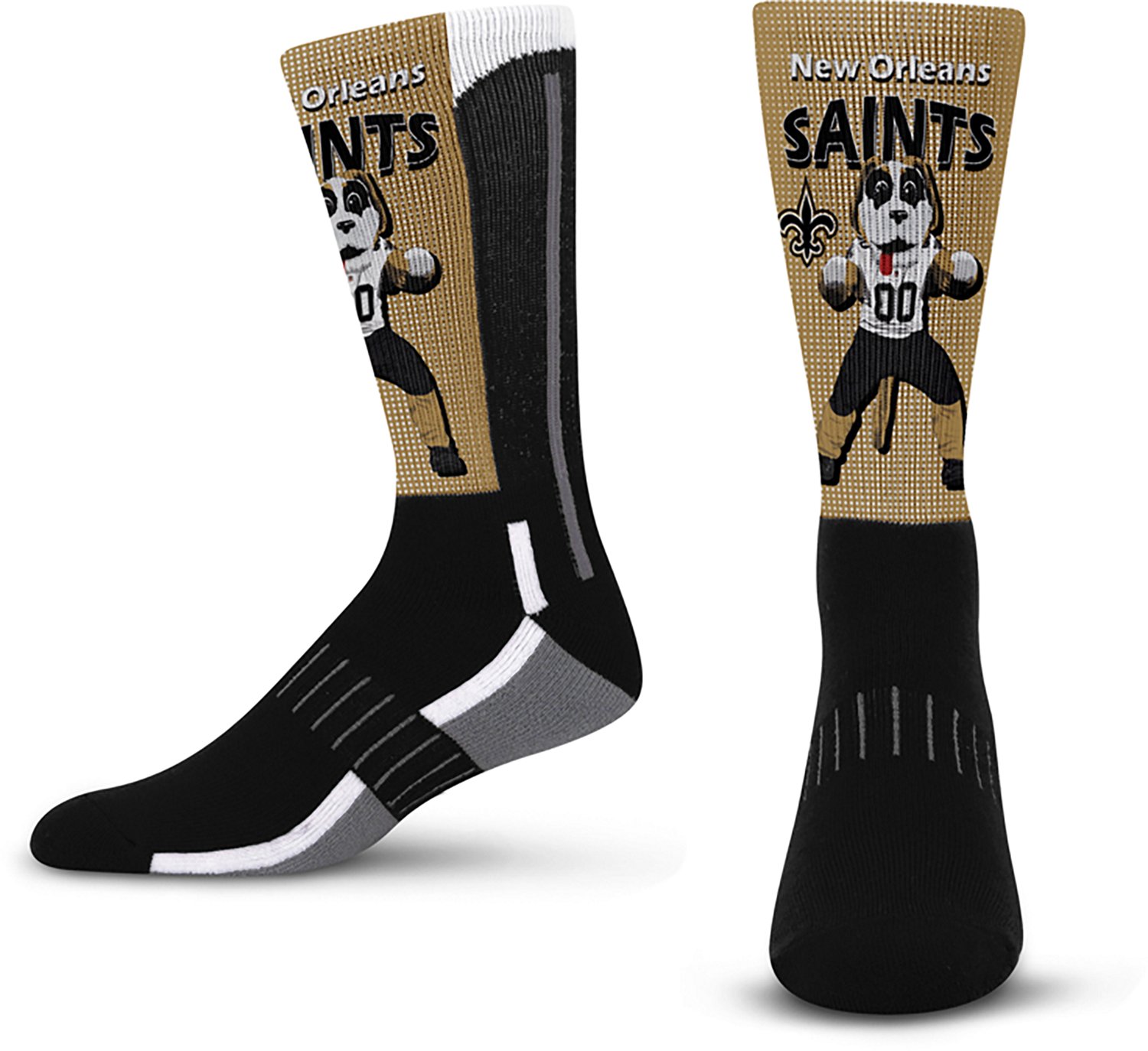 Gear up for game day when you wear the For Bare Feet Youth New Orleans Saints Mascot Fever Socks. The polyester blend offers lasting comfort, while the team design makes it clear you're a dedicated fan.