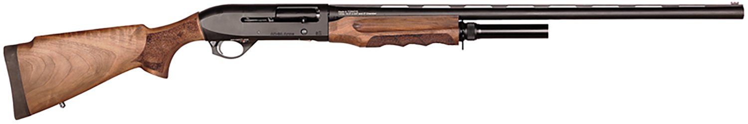 Arm yourself with the Four Peaks S4 12 Gauge Semi Automatic Shotgun. It is semi automatic with a 5+1-round capacity. The 4140 steel barrel with chrome plating is 28-inches long, and its wood stock is equipped with a walnut finish. The 7075-T6 billet aluminum receiver finishes off the design.