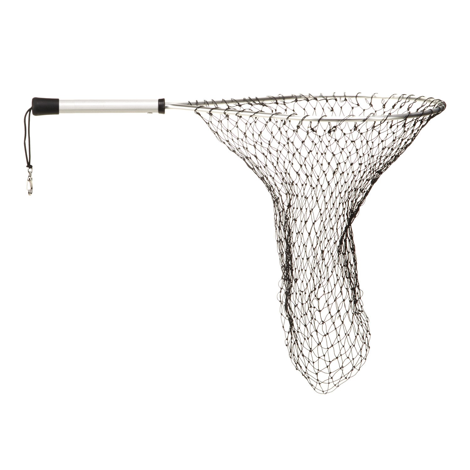 Never worry about losing your Frabill 11" x 15" Landing Net. It comes with an attached lanyard and clip to fasten the net securely to your vest or belt loop. The 7" fixed handle makes this net suitable for wading, canoeing or float tubing while you fish. 18" deep net.