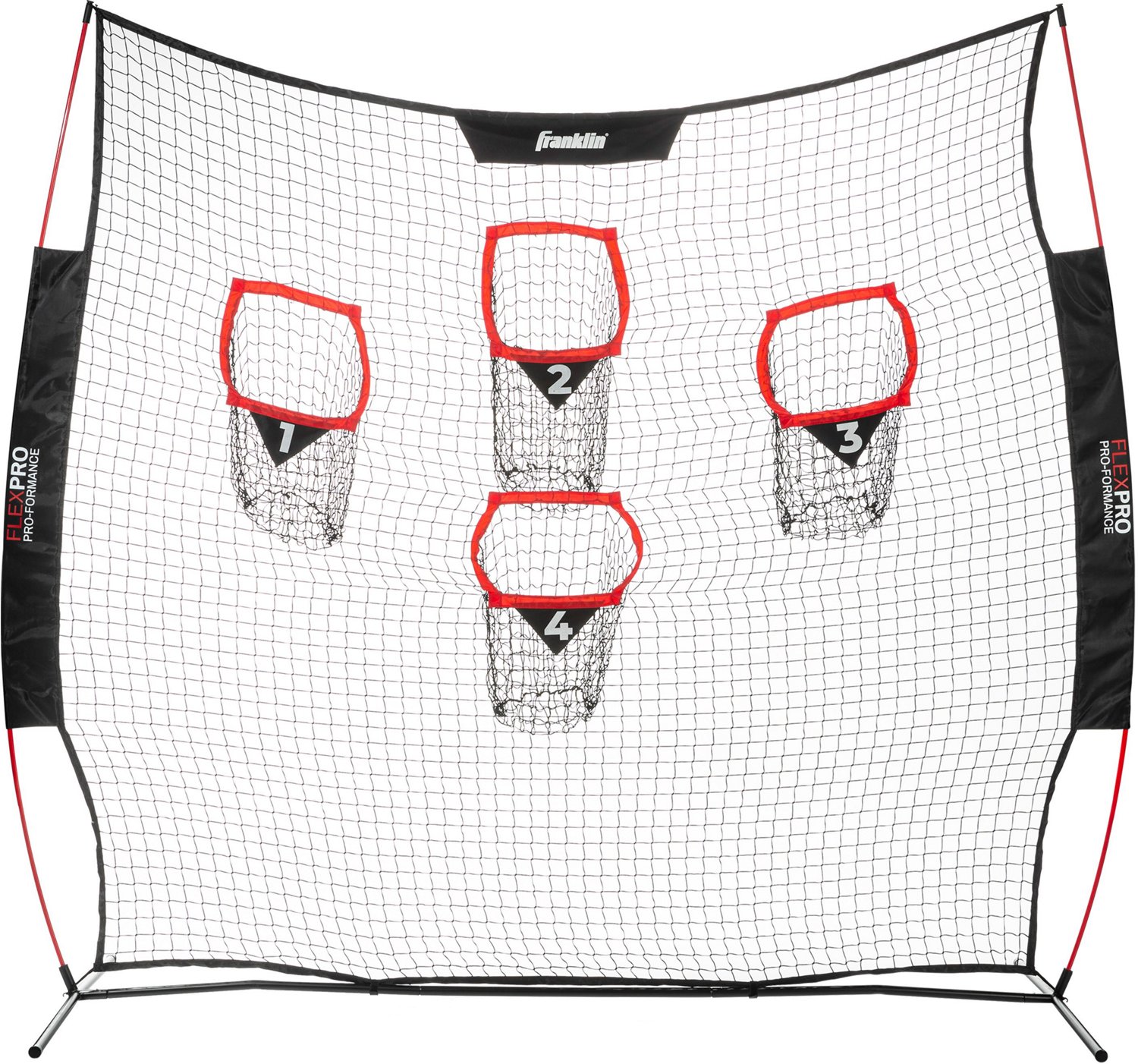 Perfect your snapping, throwing and passes with the Franklin 8 ft x 8 ft Football Accuracy Target. This extra-large target net features 4 built-in targets positioned to mimic prime receiving areas, helping you practice your aim with a variety of drill types. Steel and fiberglass poles deliver stability while UV-resistant netting offers durability in outdoor use.