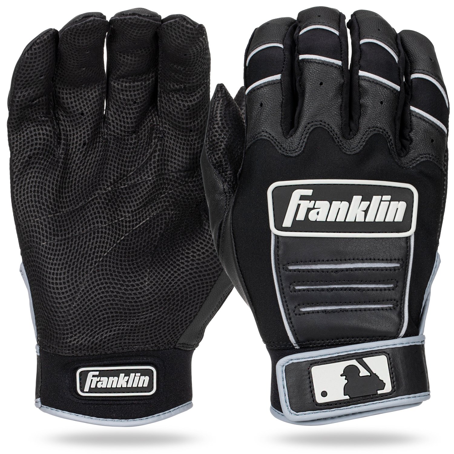 The Franklin Sports CFX Pro Batting Gloves are the official gloves of the MLB and the most popular choice among MLB pros for on-field performance. Made from premium digital cabretta leather, these gloves feature strategically-etched groove patterns that enhance grip by increasing surface area and reducing palm bunching. Tri-Curve® technology is designed to follow the pre-curved anatomy of your hand, improving the fit, feel, and overall performance by reducing bunching. The Quad-Flex Technology® ensures a perfect fit around the bat handle, while Tectonic Fit Inserts allow for flex without adding bulk to the back of the hand, offering maximum comfort and flexibility during each swing.