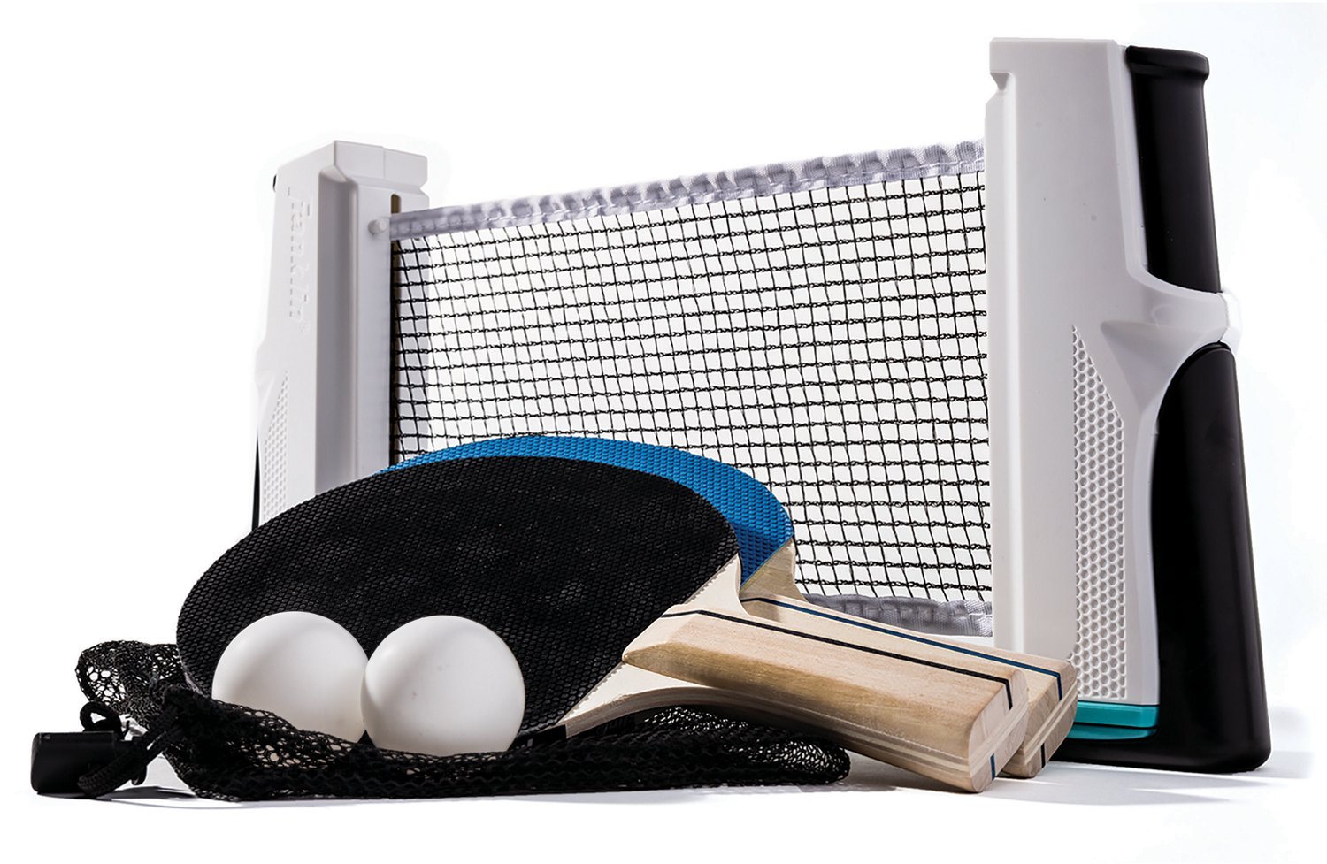 Take fun with you everywhere you go when you bring along the Franklin Anywhere Table Tennis Set. The 2 wood-core paddles with laminated wood handles encourage competitive gameplay, while the auto retractable net allows you to compete with your friends almost anywhere. The mesh carry bag securely stores the set for easy transport.