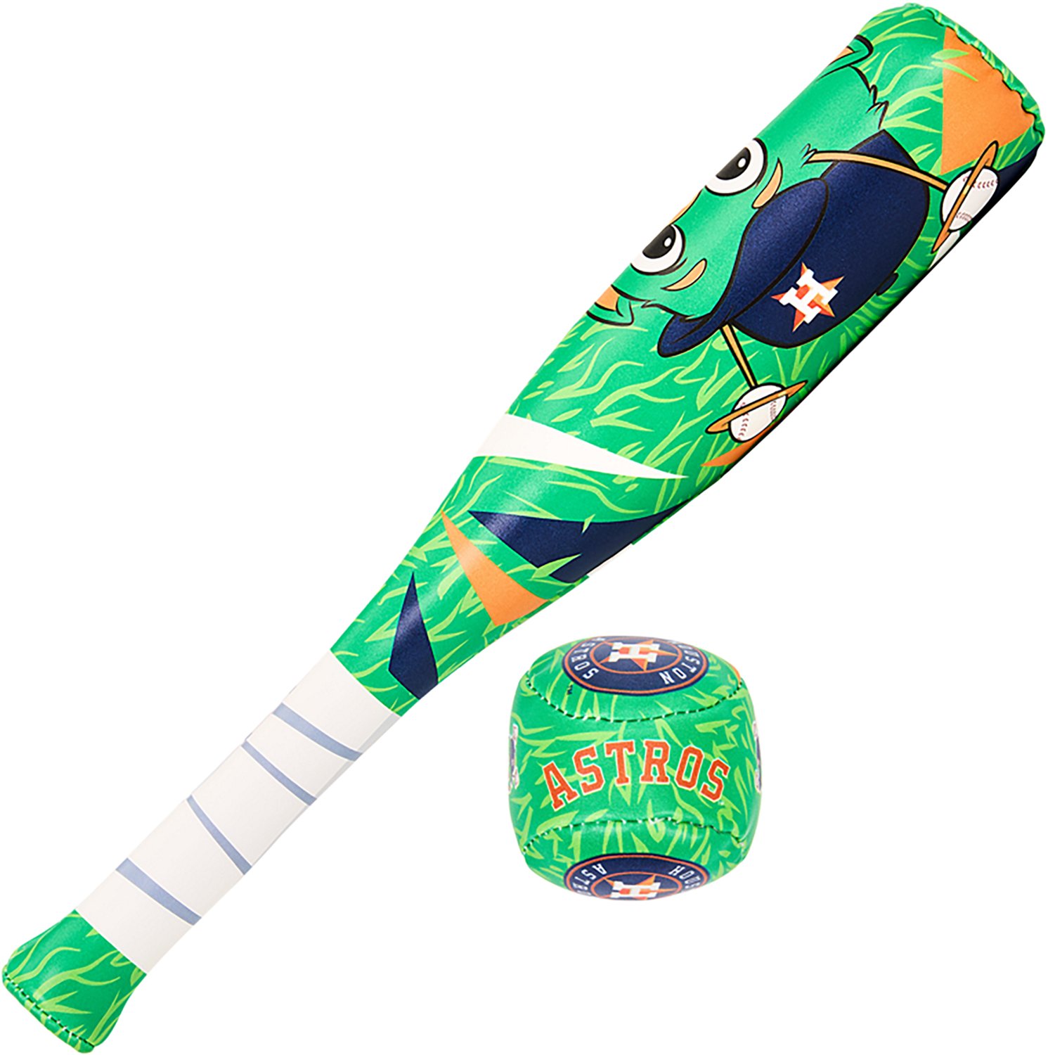 Help a young fan get into America's pastime with the Franklin Houston Astros Mascot Mini Bat and Ball Set. The set is made with soft sport polyester construction that enables you to use it for play or showcase it indoors, and the team color, logos, and mascot designs let everyone know which team your little one supports. The included 13-inch bat and ball help your little one develop fundamental baseball skills.