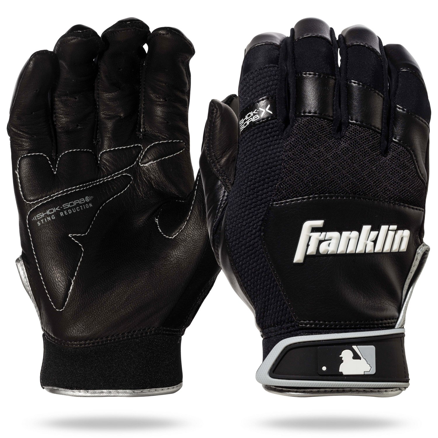 Take the pain out of your at bats and grab a pair of the padded Franklin Sports Shok-Sorb batting gloves today! These batting gloves are designed with extra palm padding to eliminate the sting from the bat in cold weather. Whether you're playing baseball or softball, the sting from the bat on a cold day can cripple a hitter's hands. These pro quality leather batting gloves are the perfect accessory for adult and youth hitters to protect their hands in every at bat. The high quality leather improves grip, and the mesh vents in the handback help your hands breathe for a cool comfortable fit. Plus, the Shok-Sorb batting gloves come in a variety of colors and adult and youth sizes, so every baseball and softball player can get the perfect pair of batting gloves for them. So grab yourself a pair of Shok-Sorb batting gloves and step to the plate today!