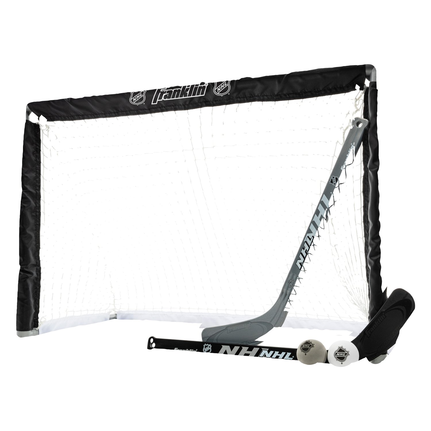 Show the neighborhood what you're made of using the Franklin NHL Mini Hockey Goal Set. Grab one of the included sticks and soft foam balls, then toss the other one to a friend to see who can score the most points on the mini goal. Featuring high-quality construction, this goal's plastic-tube frame and durable net will last through every pick-up game to come.