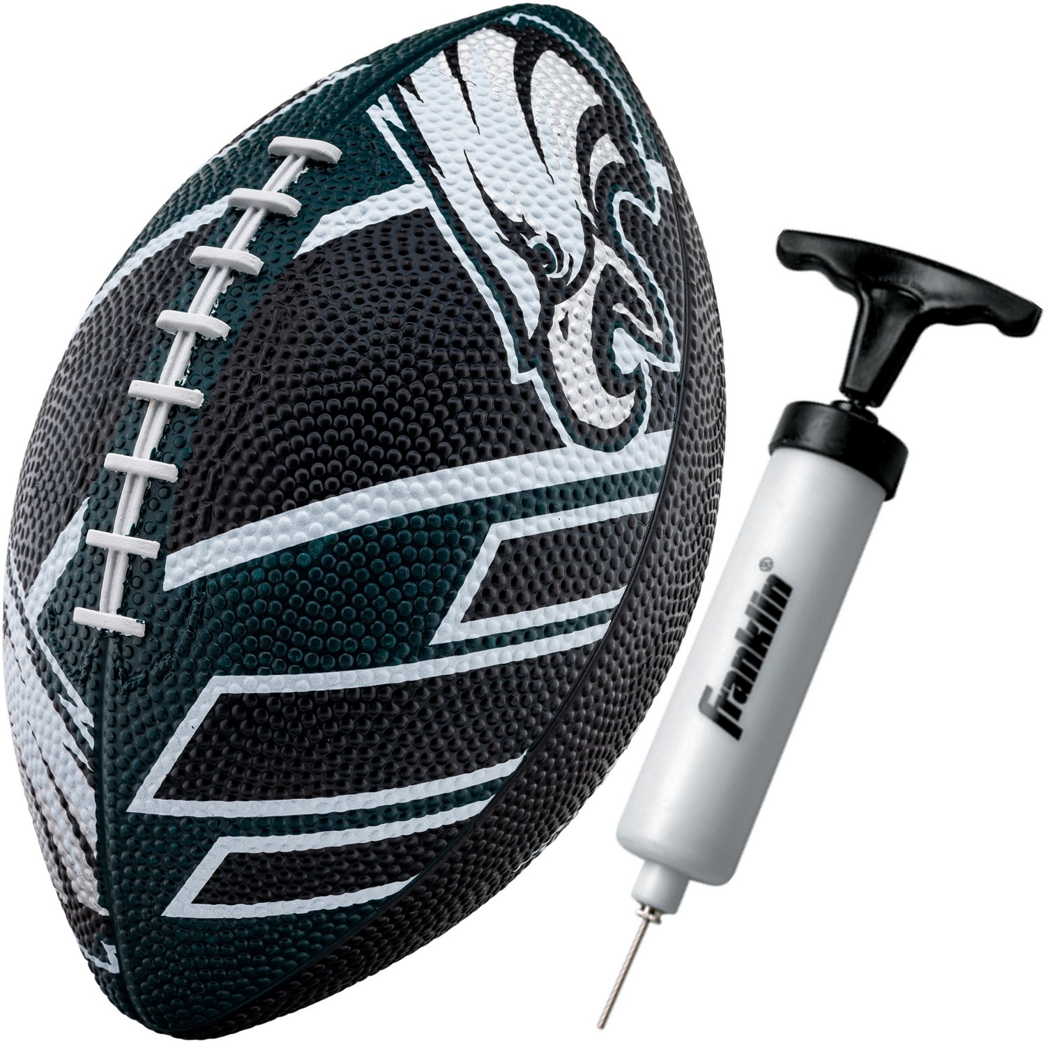 Enjoy Eagles football action whether at the beach or in the backyard with the Franklin Philadelphia Eagles Mini Team Football. Pro-style raised laces supply traction for throws and catches, and the tacky texture improves grip for efficient control.